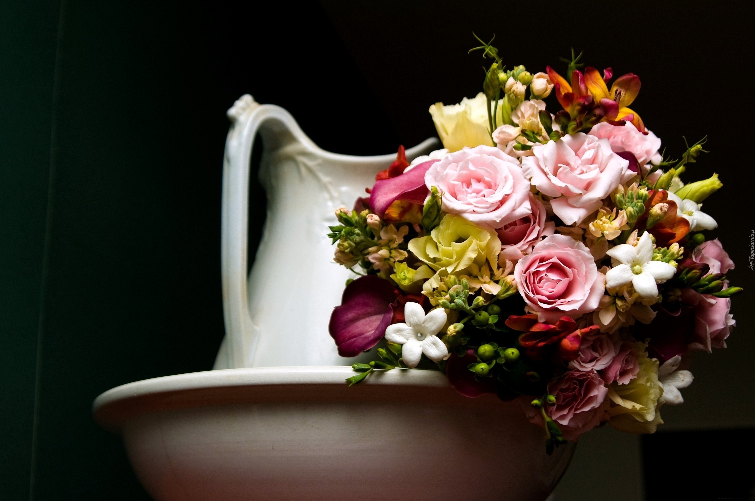 Edytor tapety: Bukiet, Kwiatów, Biały, Dzban, Miska