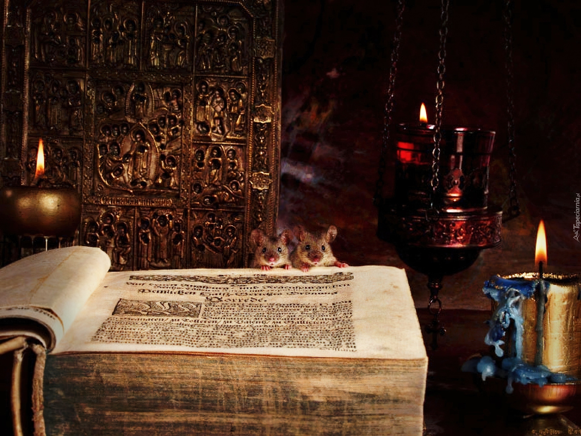 Edytor tapety: Myszki, Stara, Księga, Świece