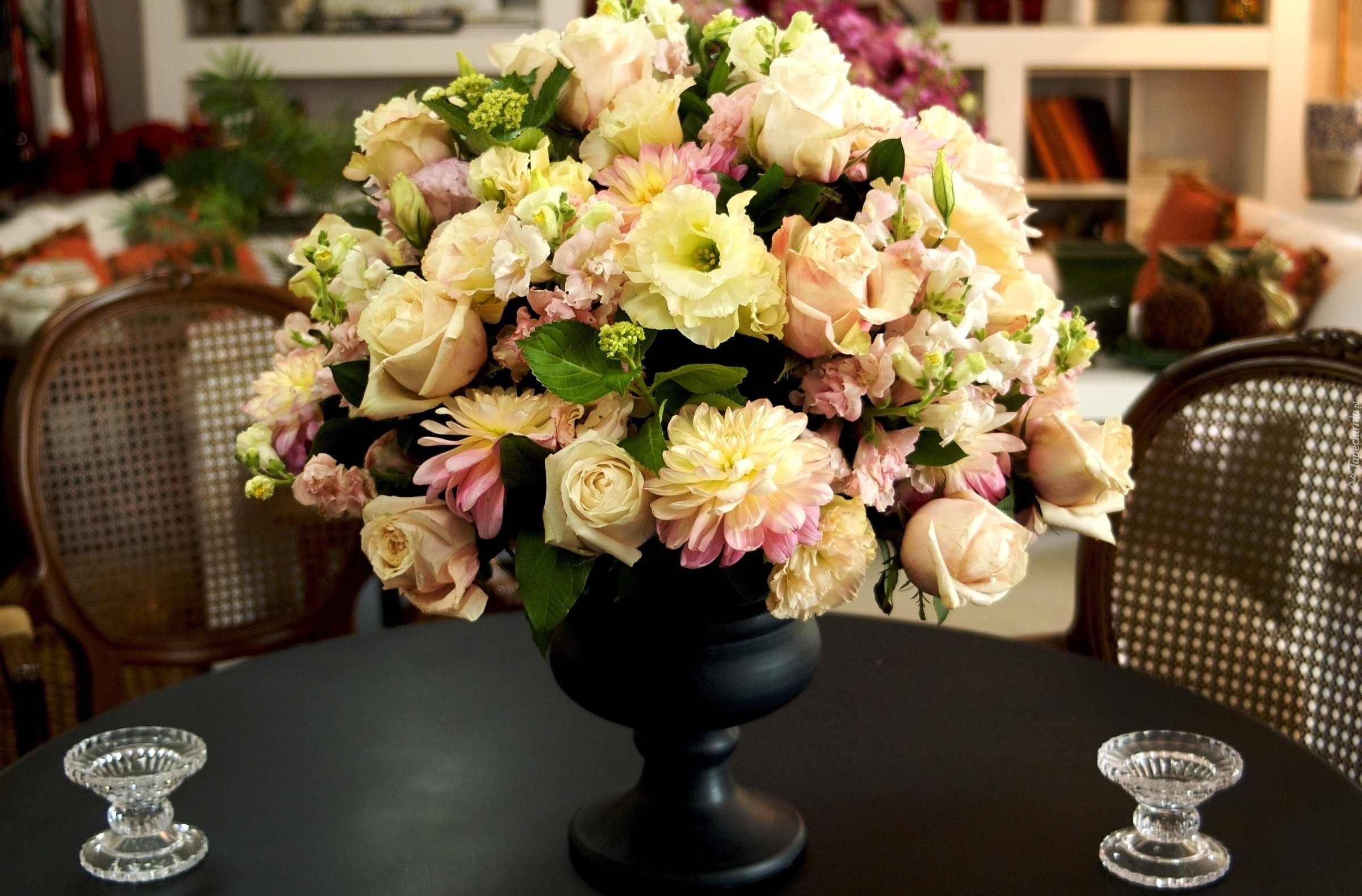 Edytor tapety: Stół, Bukiet, Kwiatów, Świeczniki
