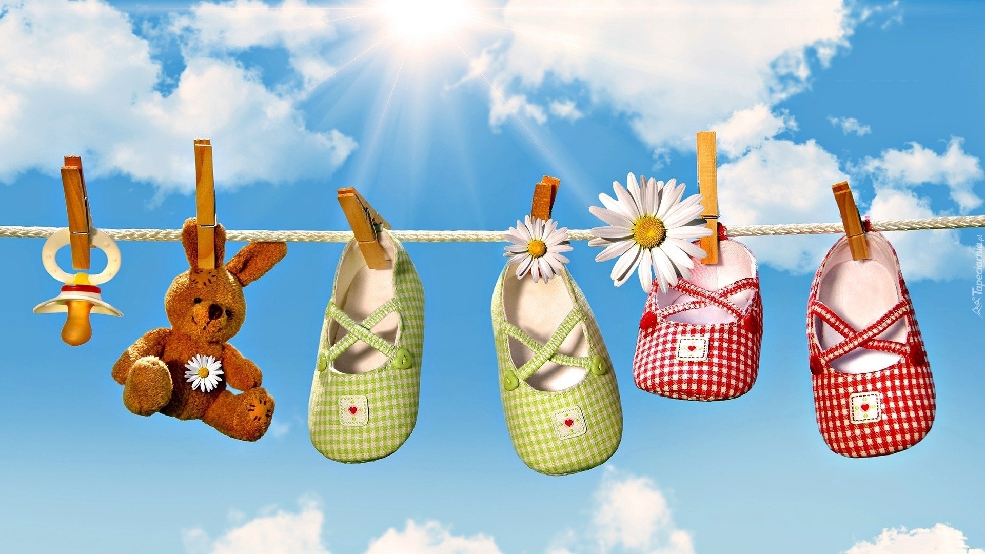 Edytor tapety: Niebo, Sznur, Buciki, Zajączek, Smoczek