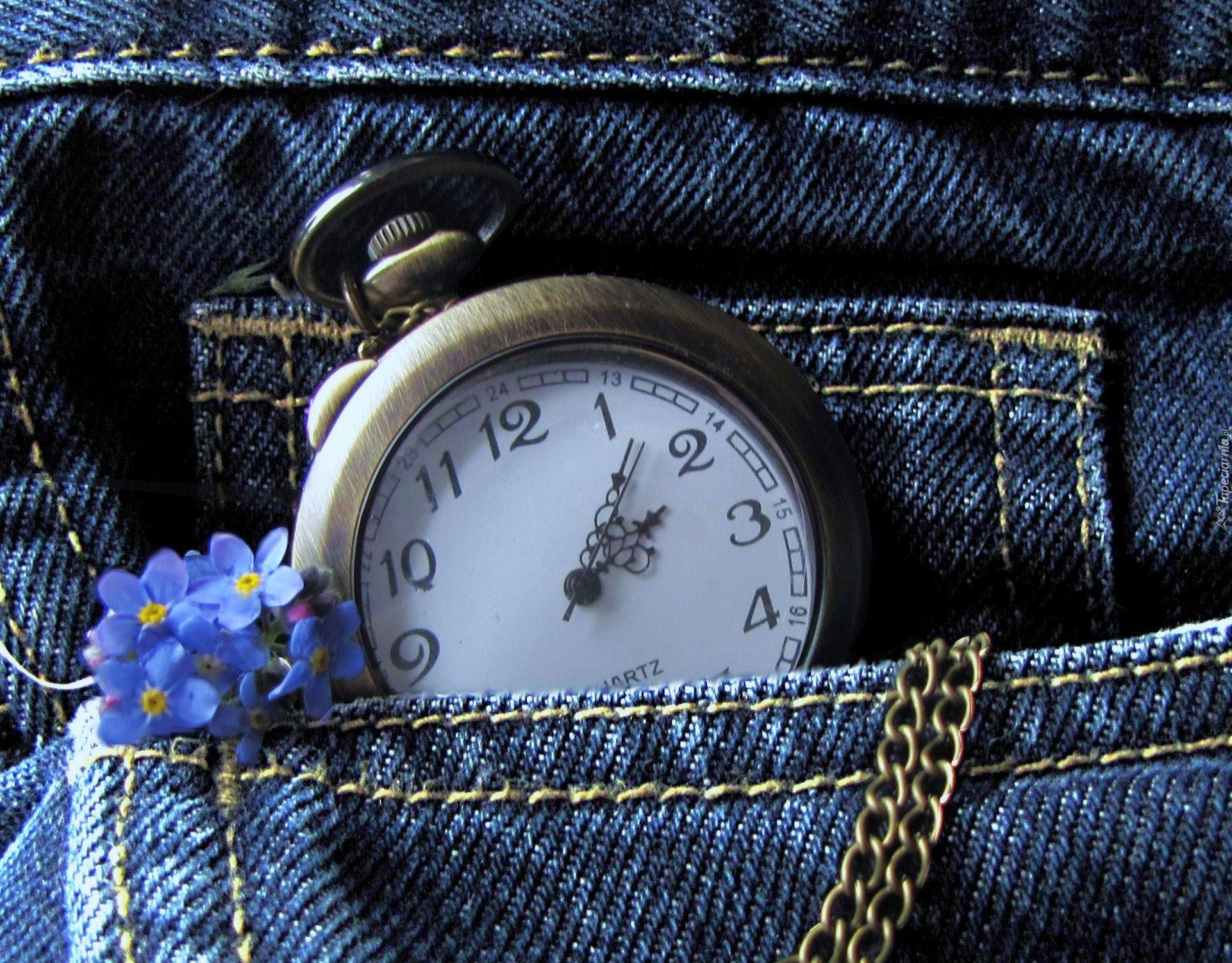 Edytor tapety: Jeansy, Kieszeń, Zegarek, Niezapominajki