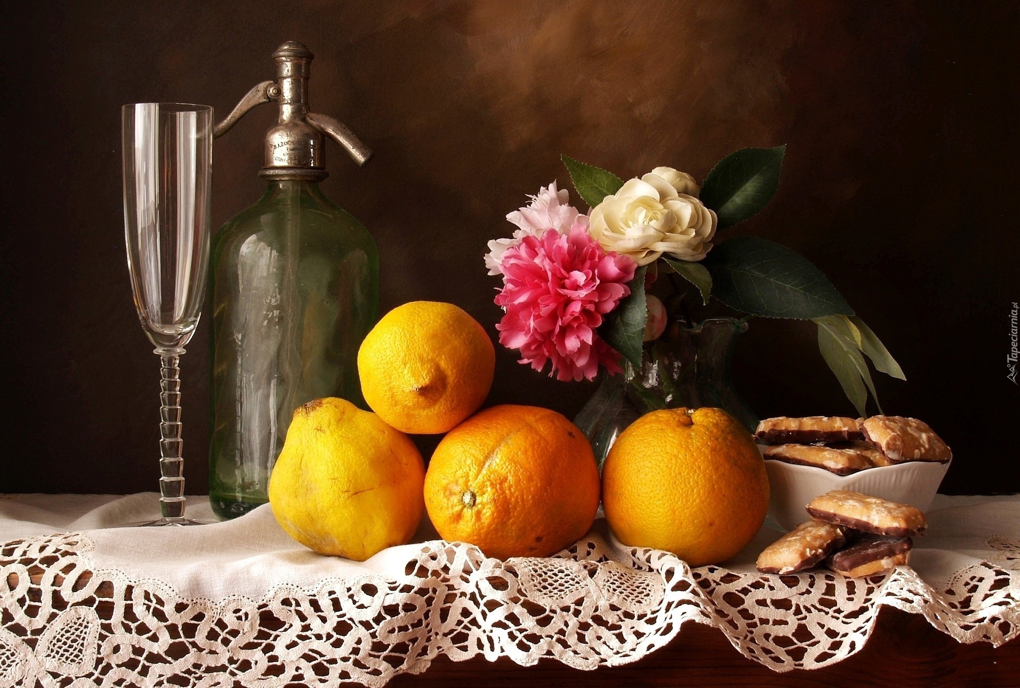 Edytor tapety: Cytryny, Kwiaty, Butelka, Syfon, Lemoniada