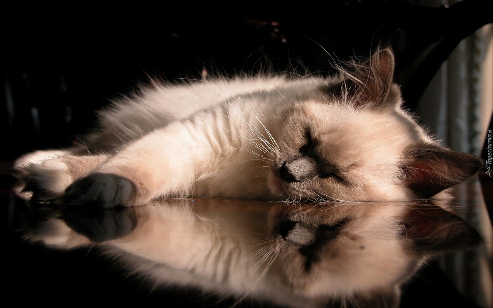 Edytor tapety: Śpiący, Kot, Łapka, Odbicie