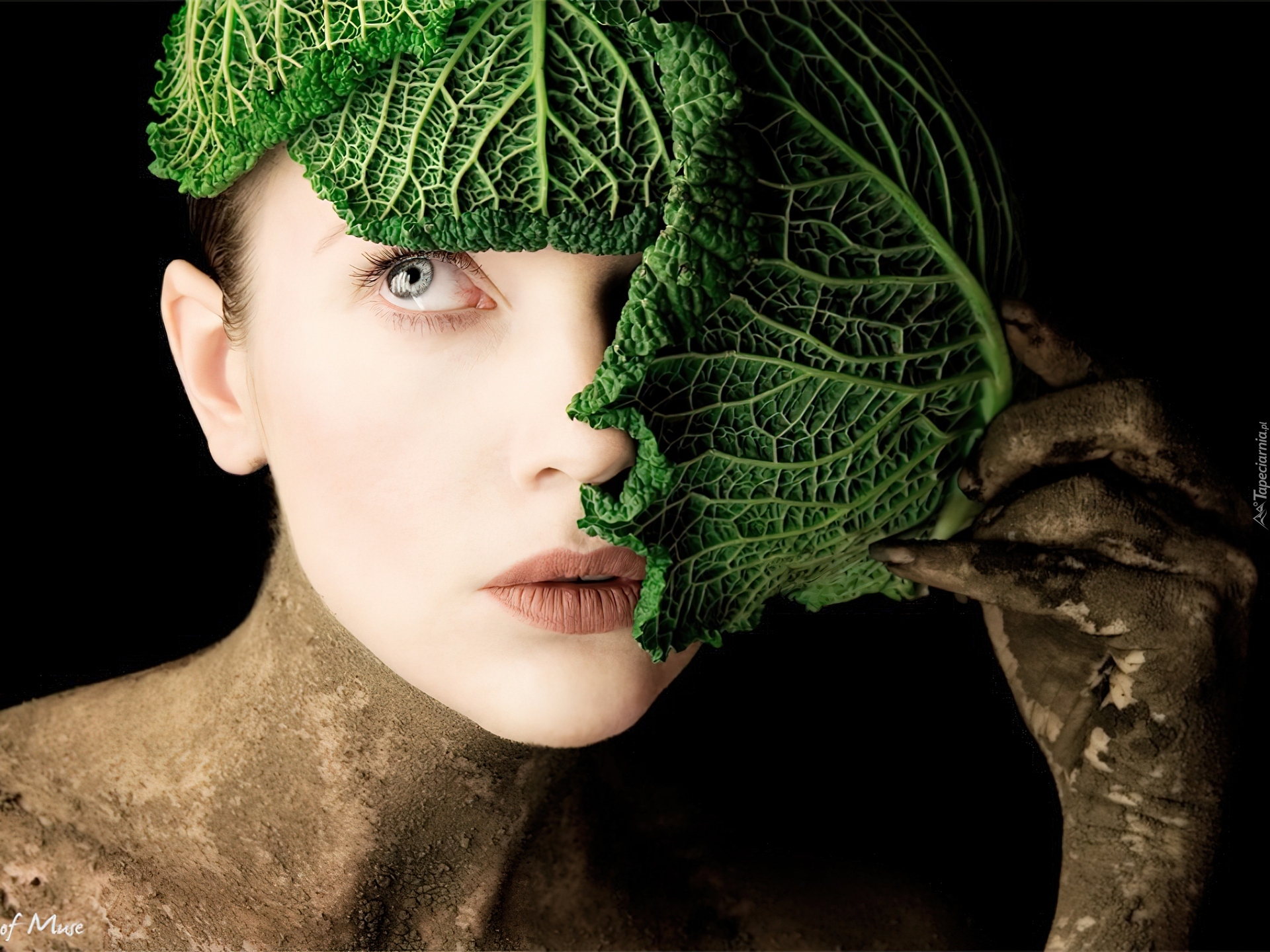 Edytor tapety: Kobieta, Liście, Kapusty
