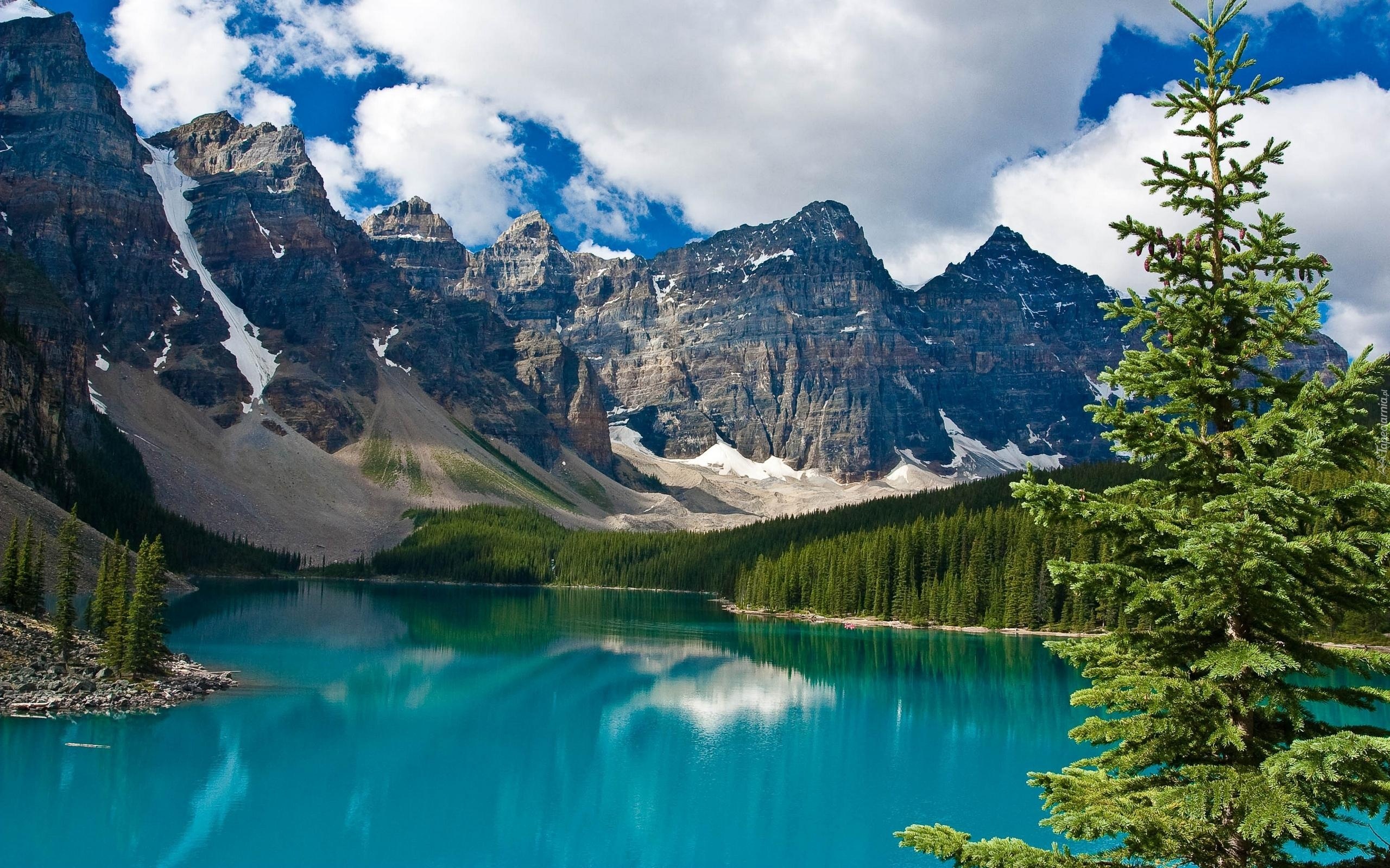 Edytor tapety: Niebo, Góry, Jezioro, Drzewa