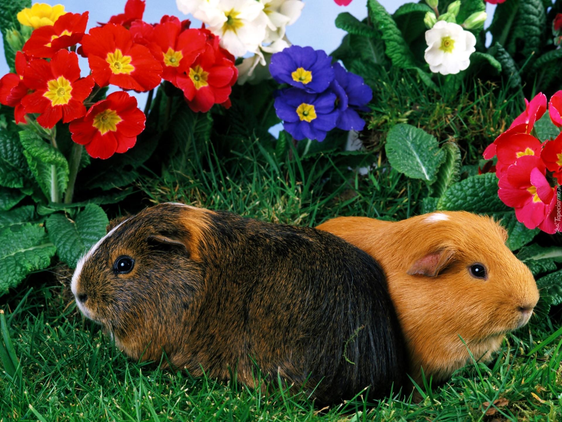Edytor tapety: Dwie, Świnki, Trawa, Kwiaty