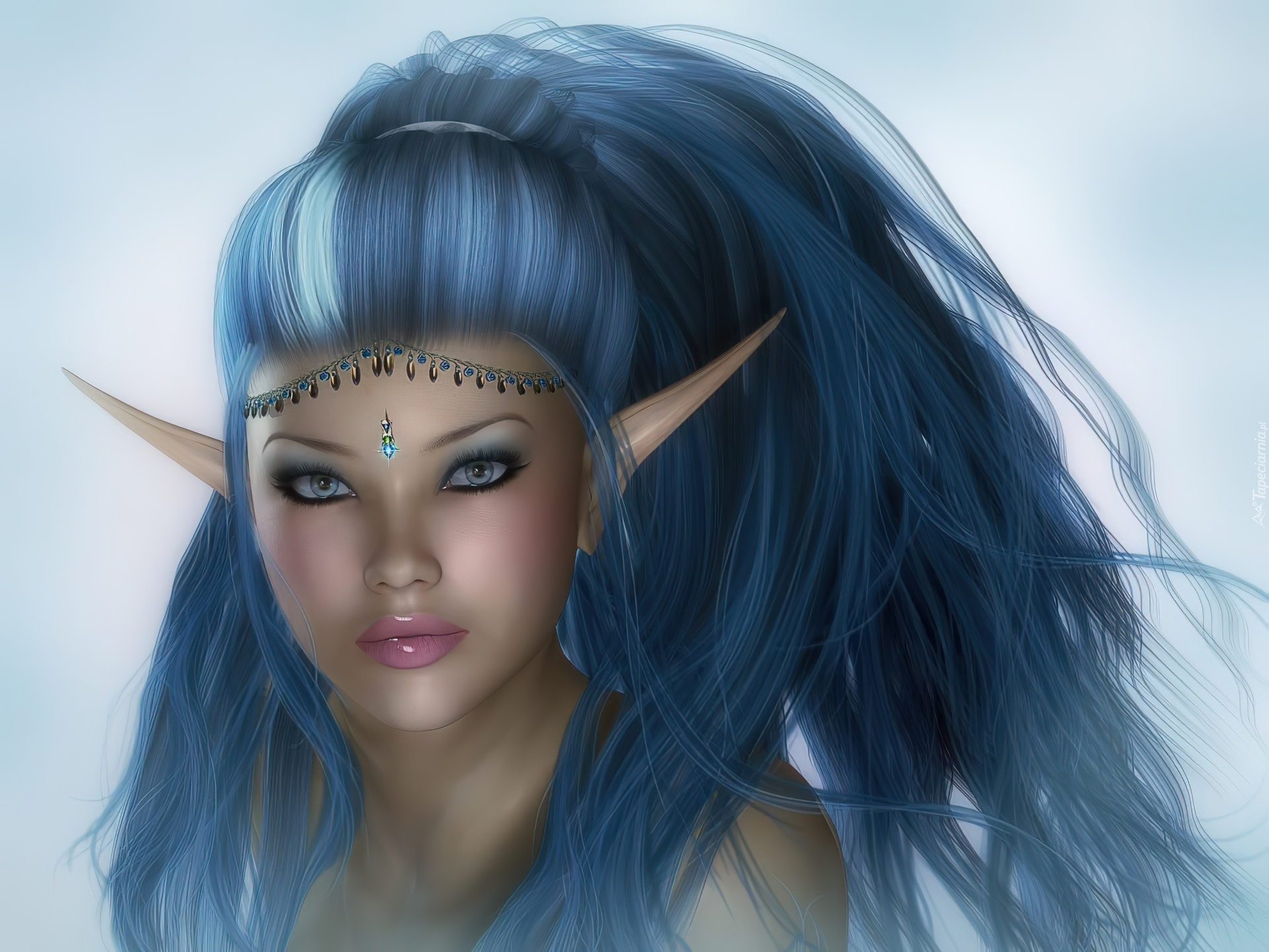 Edytor tapety: Kobieta, Elf, Niebieskie, Włosy