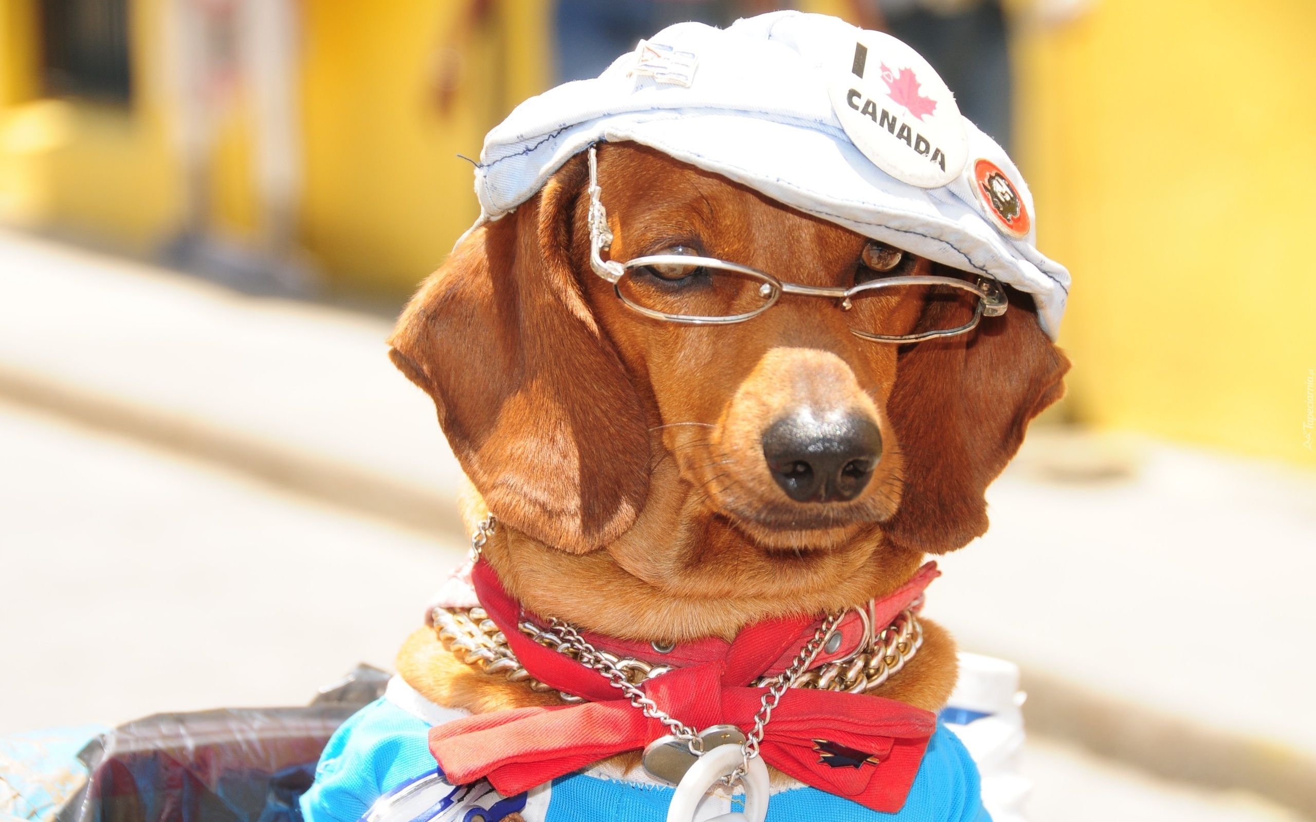 Edytor tapety: Jamnik, Czapka, Okulary, Obroża