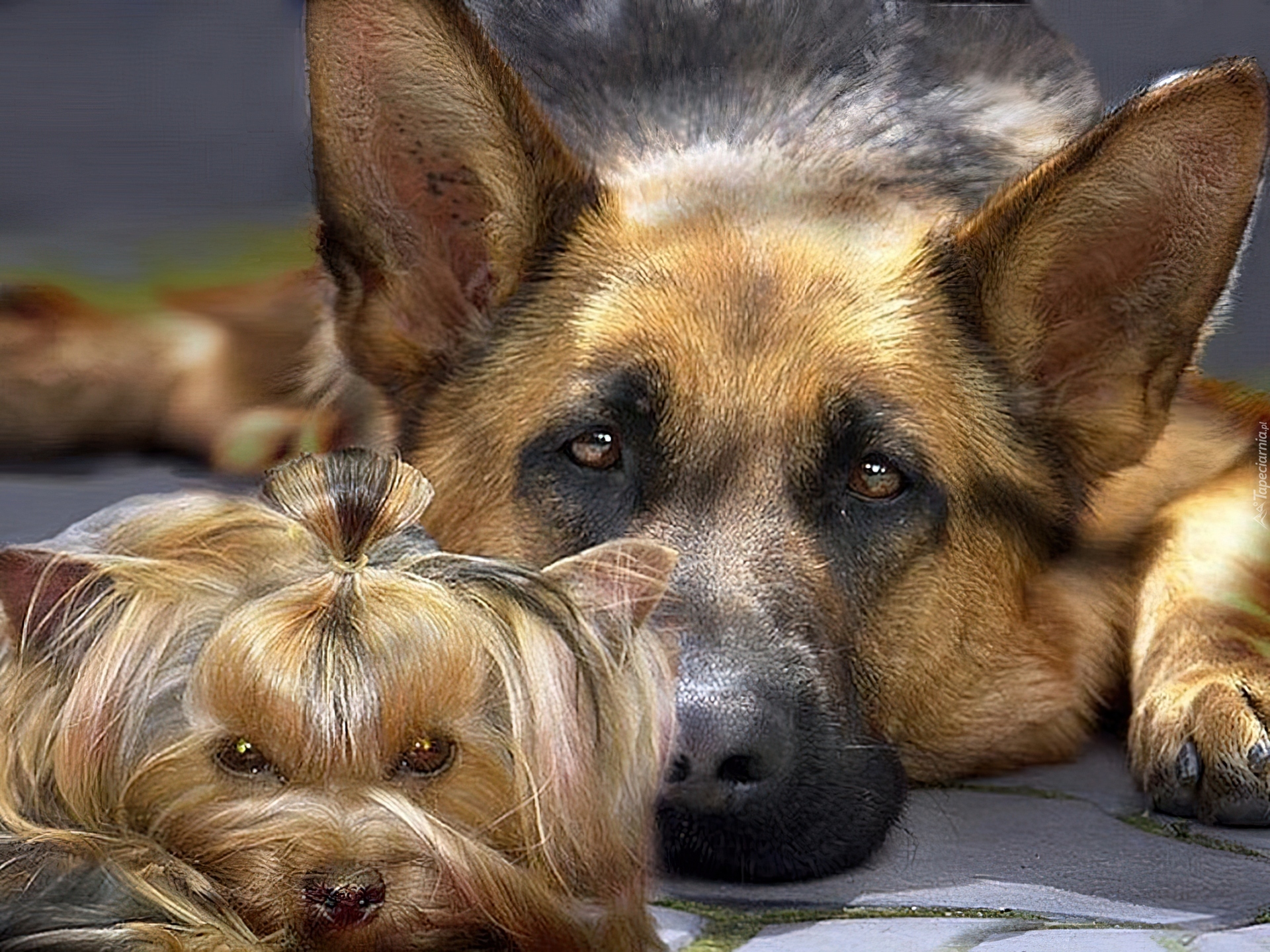 Edytor tapety: Dwa, Psy, Owczarek, Niemiecki, York