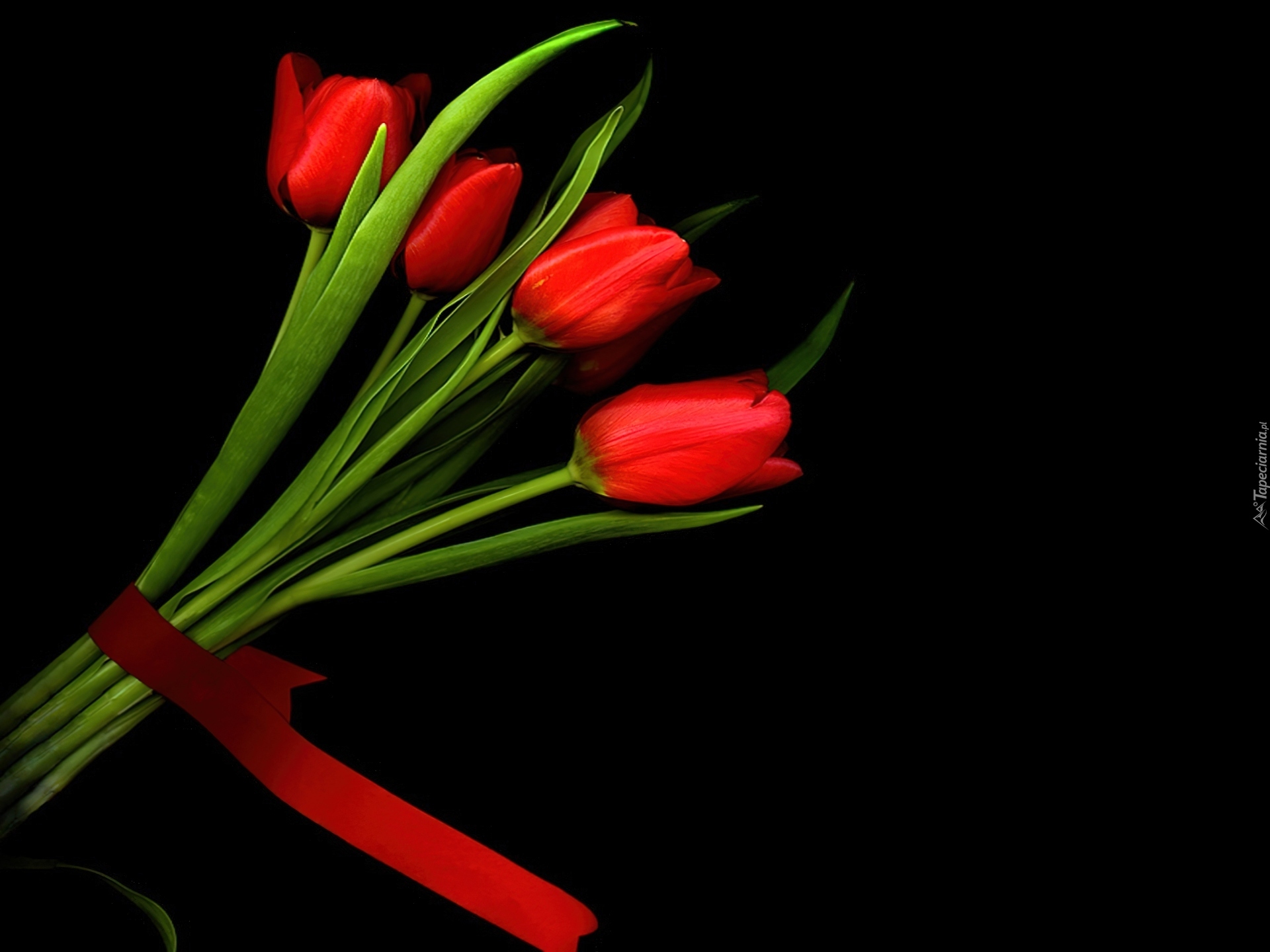 Edytor tapety: Czerwone, Tulipany, Wstążka