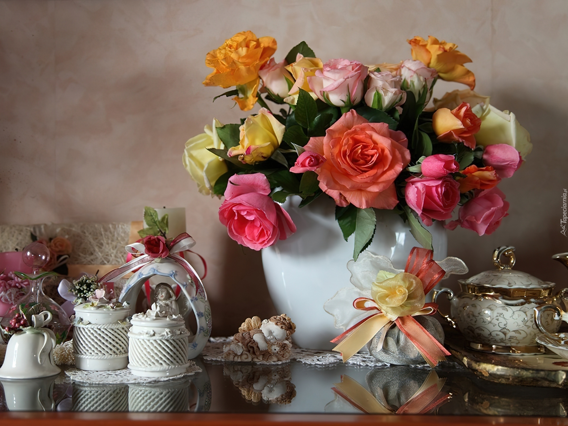 Edytor tapety: Kolorowe, Róże, Porcelana