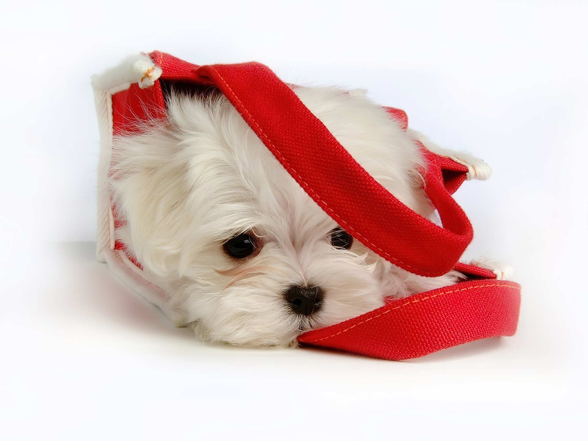 Edytor tapety: Biały, Szczeniaczek, Czerwona, Torba