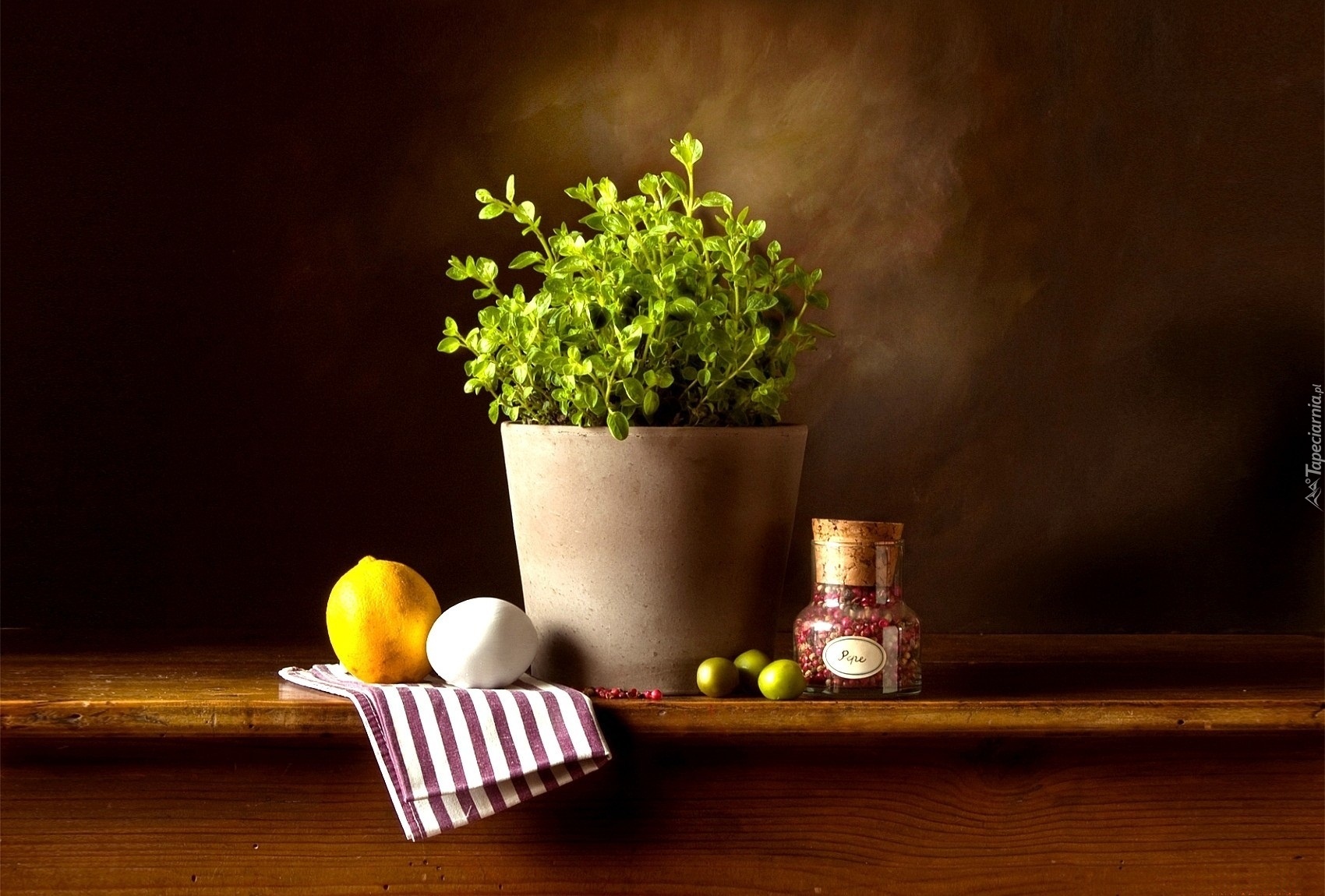 Edytor tapety: Zioła, Doniczka, Pieprz, Cytryna, Czosnek