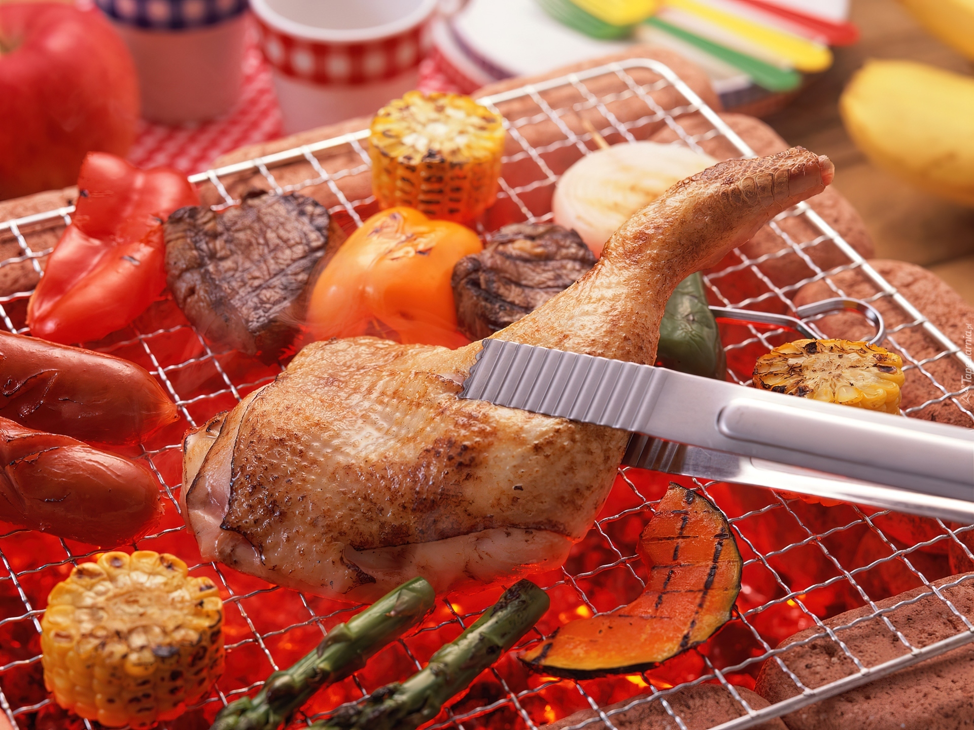 Edytor tapety: Grillowanie, Udo, Kukurydza, Papryka