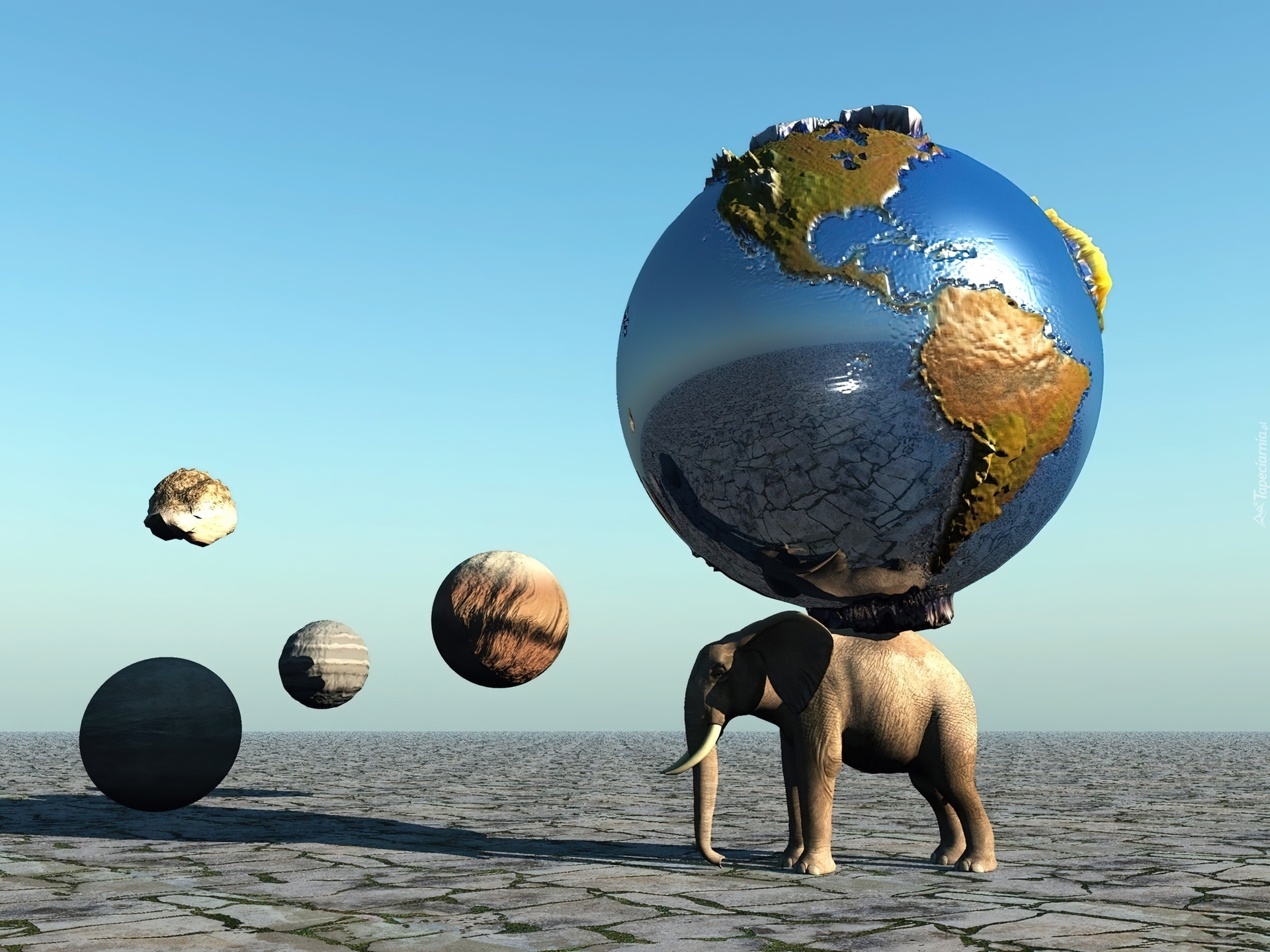 Edytor tapety: Niebo, Słoń, Planety, Ziemia, 3D