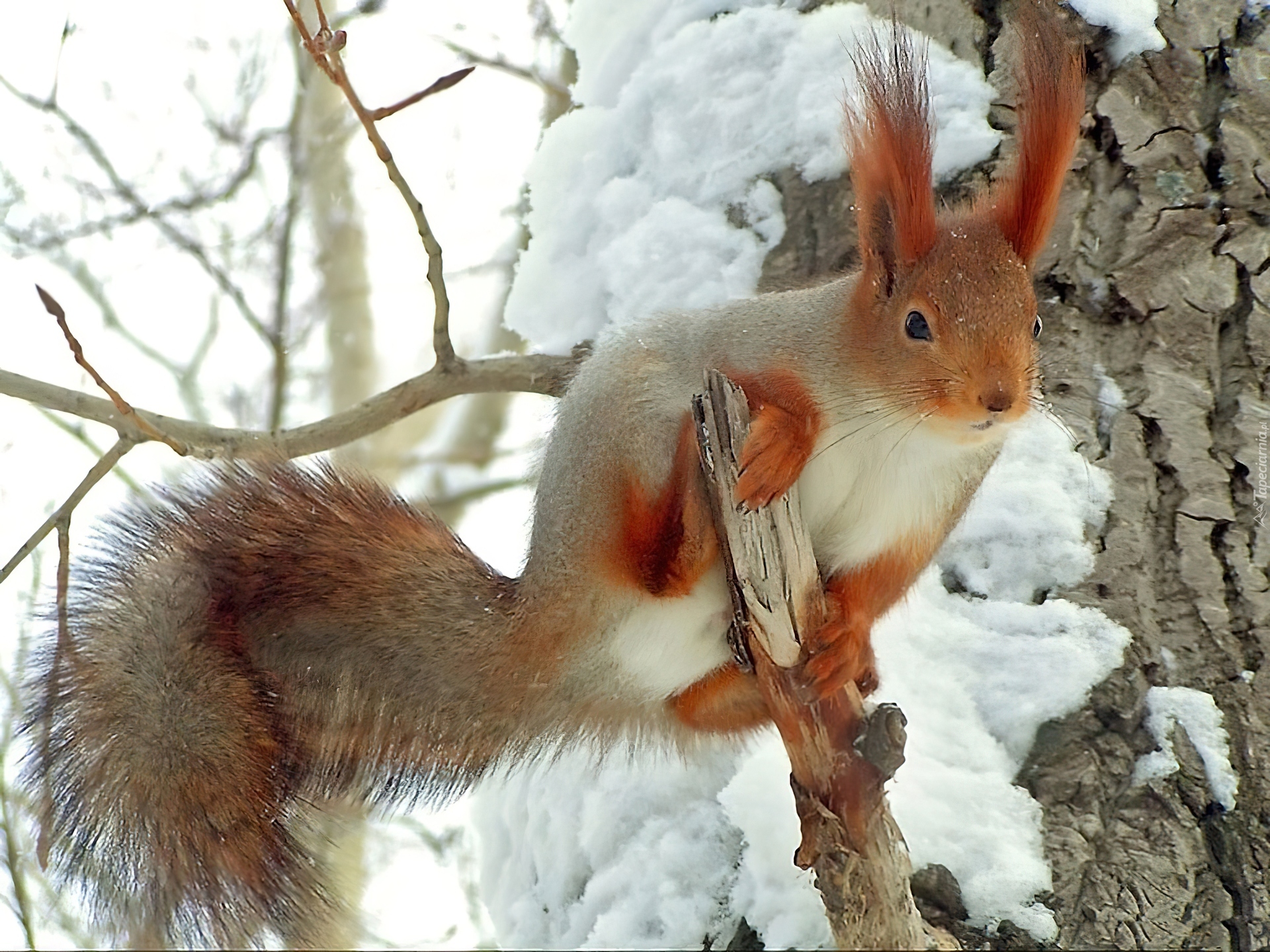 Edytor tapety: Konary, Drzewa, Wiewiórka, Śnieg