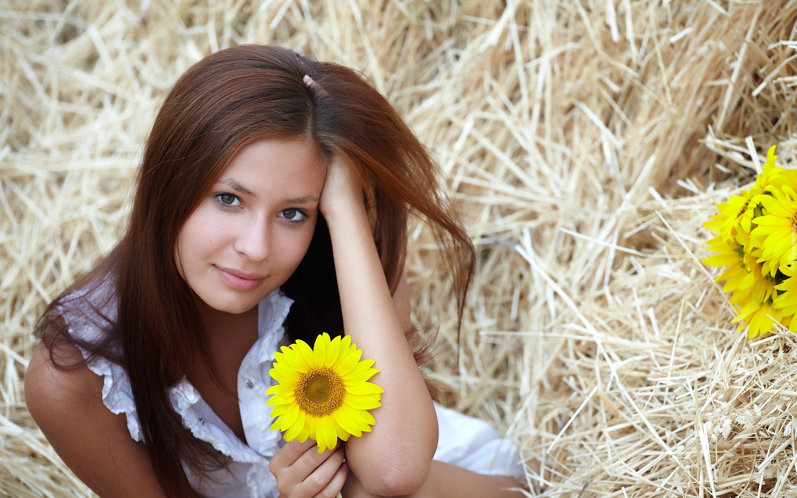 Edytor tapety: Dziewczyna, Kwiaty, Siano