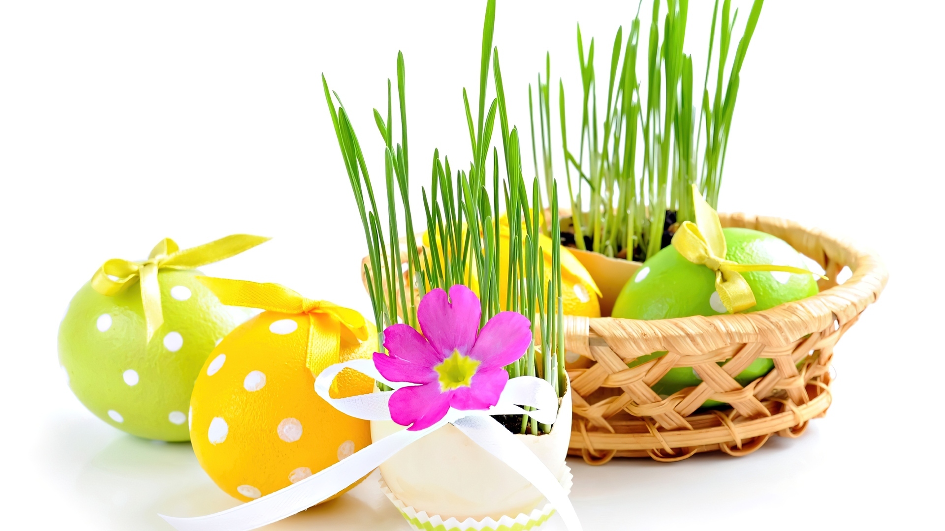 Edytor tapety: Koszyk, Wielkanocne, Jajka, Trzwa, Kwiatuszek