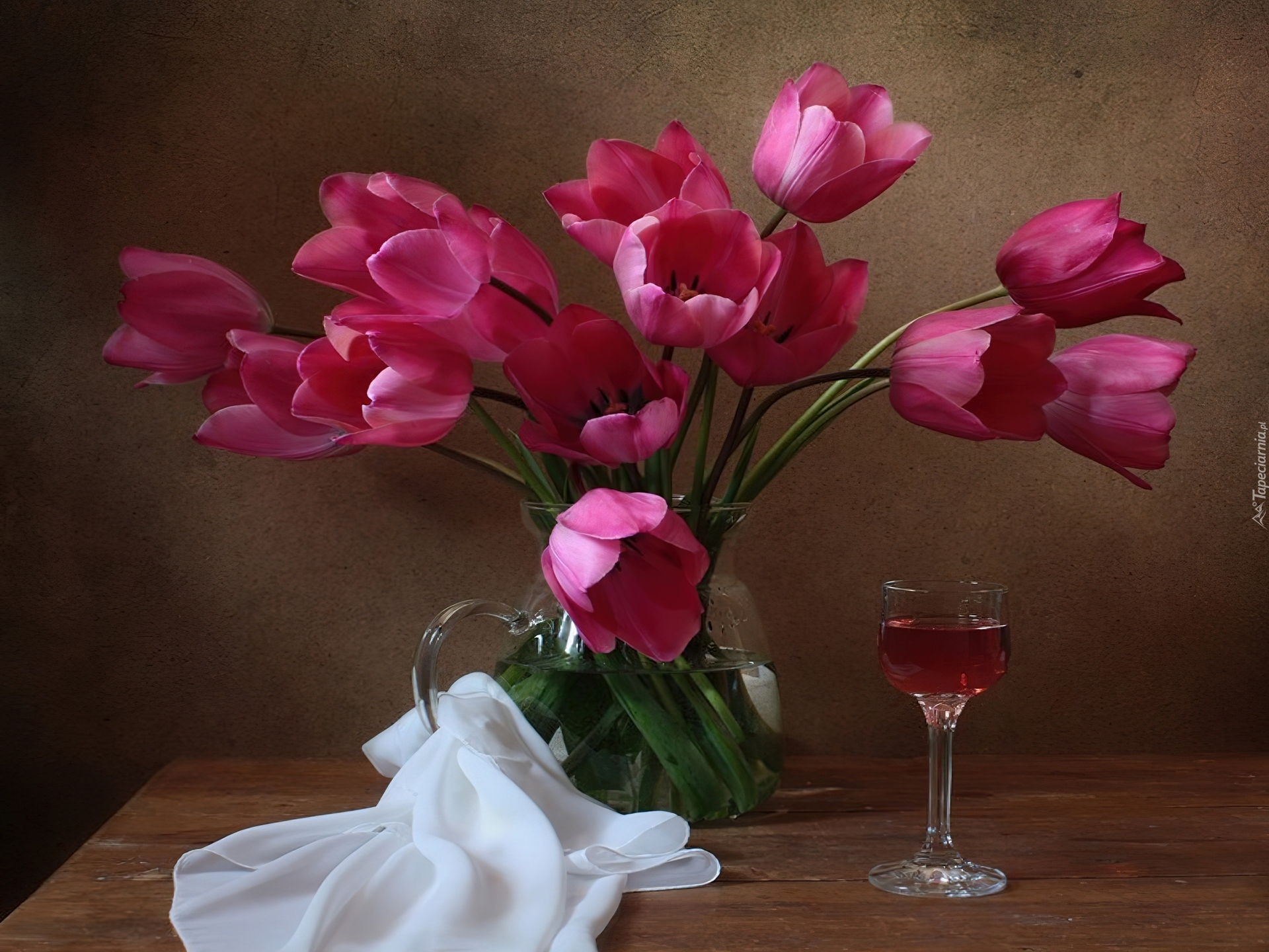 Edytor tapety: Dzbanek, Kieliszek, Tulipany, Szal