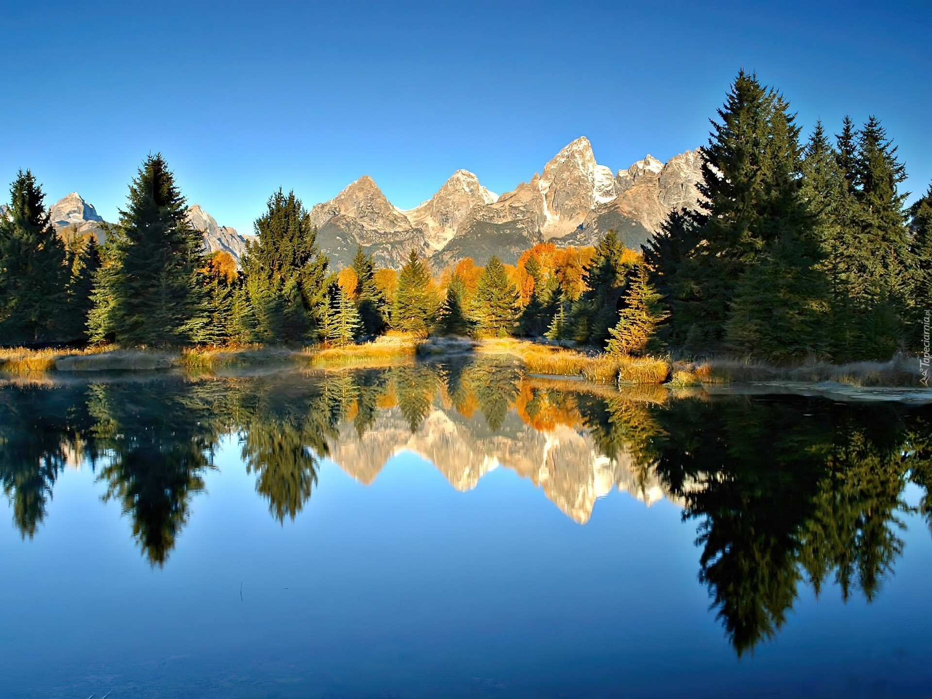 Edytor tapety: Góry, Jezioro, Drzewa, Iglaste