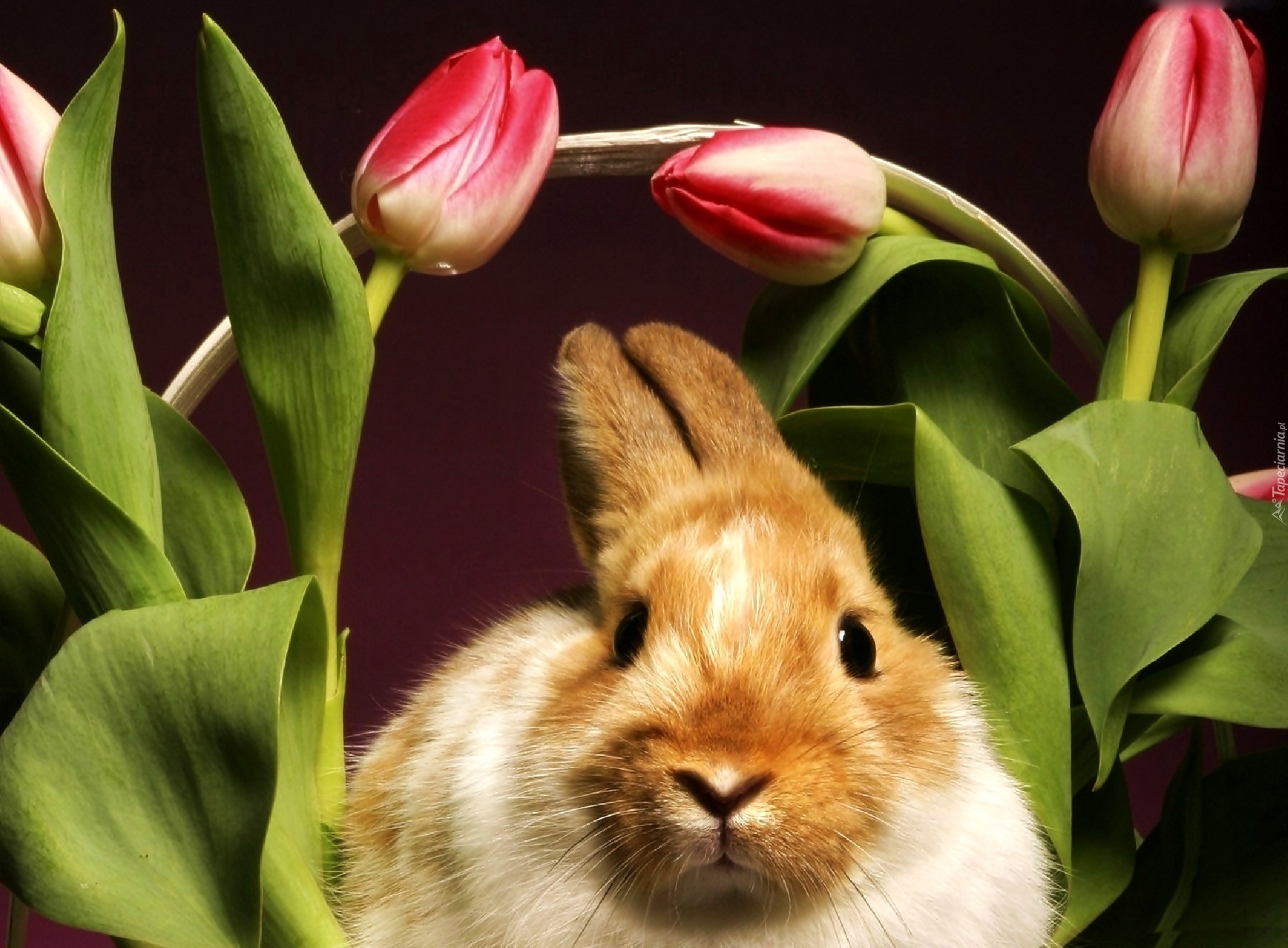 Edytor tapety: Wielkanocny, Królik, Tulipany