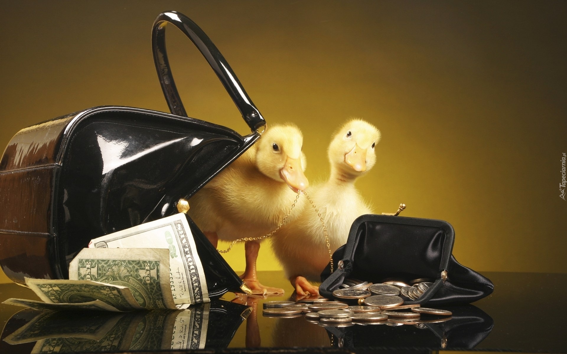 Edytor tapety: Kaczuszki, Torebka, Portmonetka, Dolary, Monety