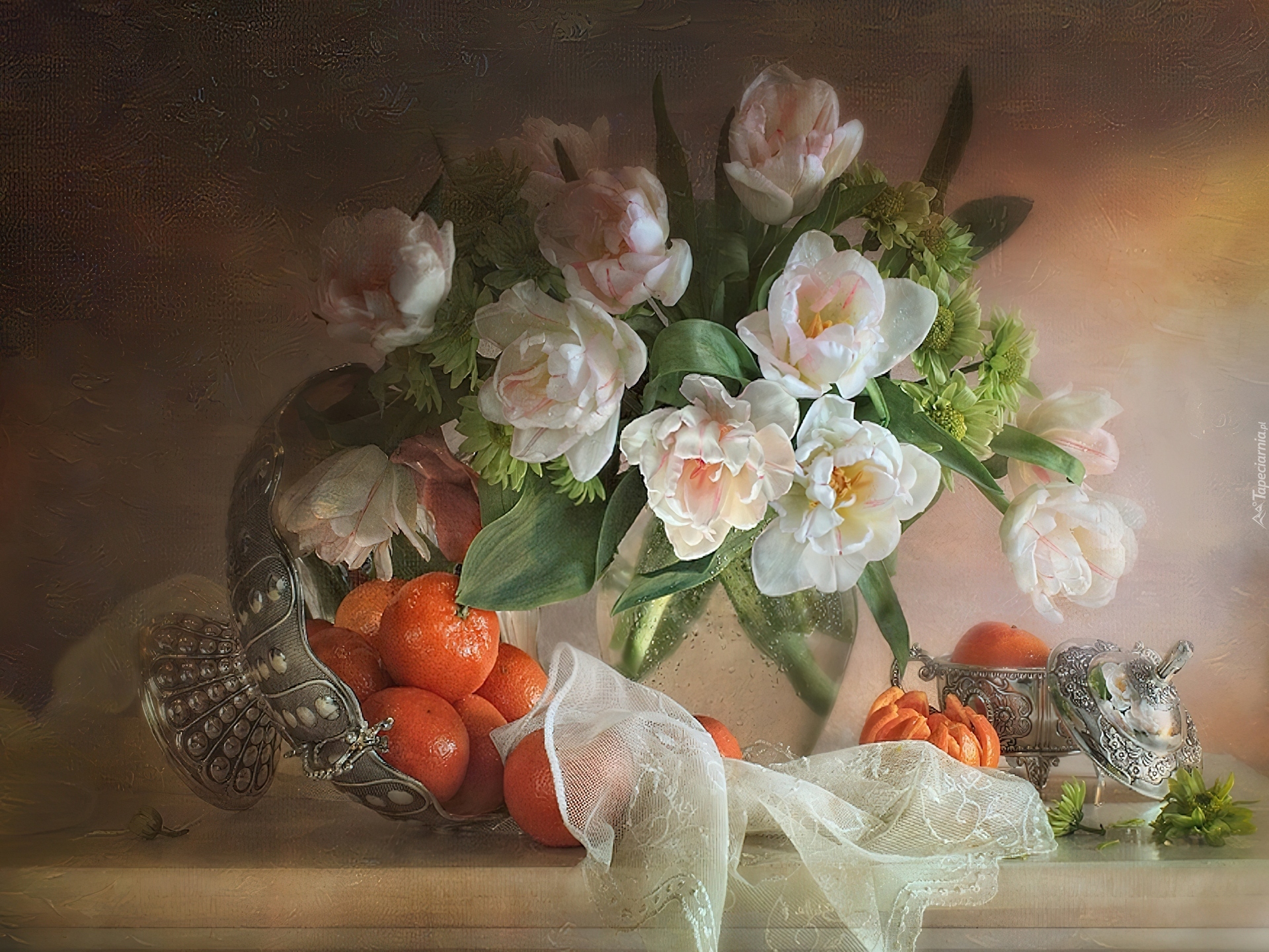 Edytor tapety: Kwiaty, Waza, Mandarynki