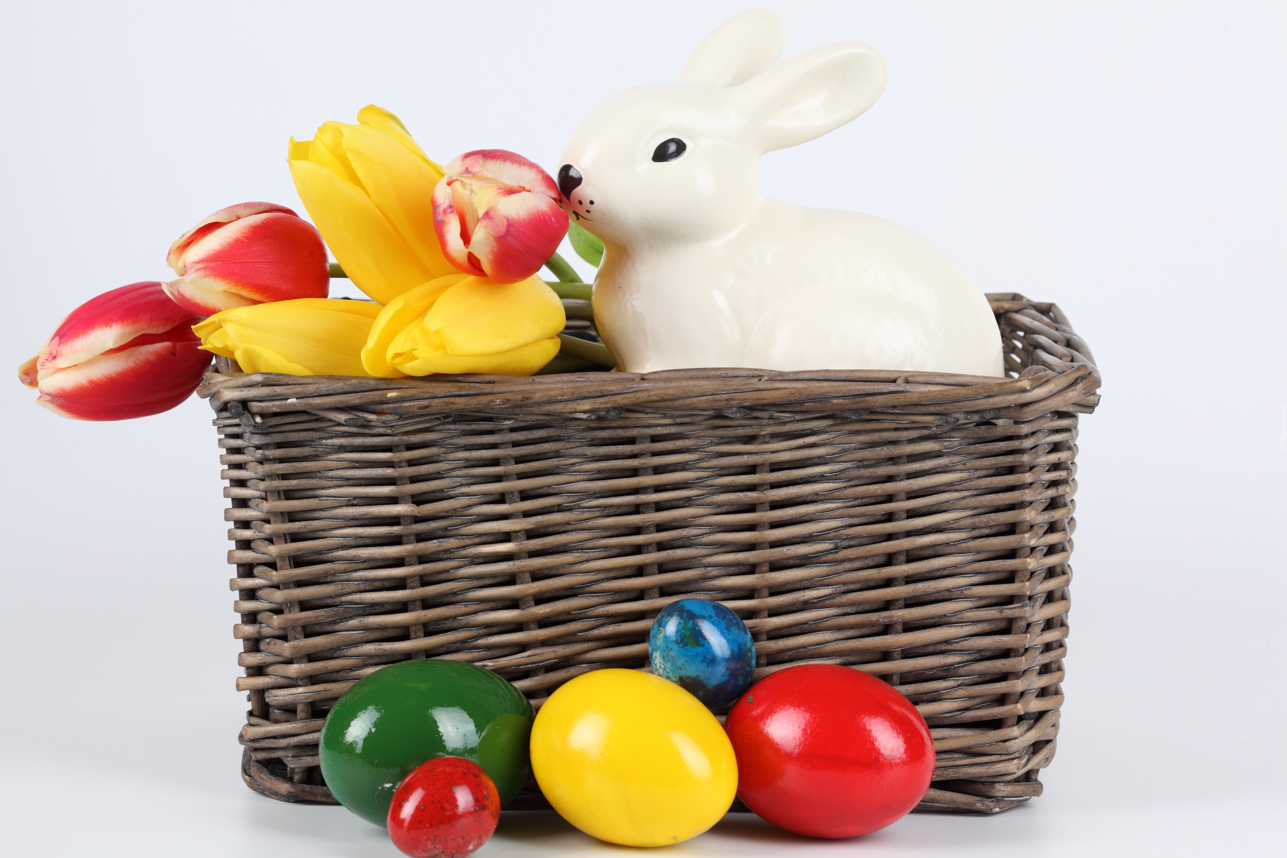 Edytor tapety: Porcelanowy, Zajączek, Koszyk, Tulipany, Wielkanocne, Jajka