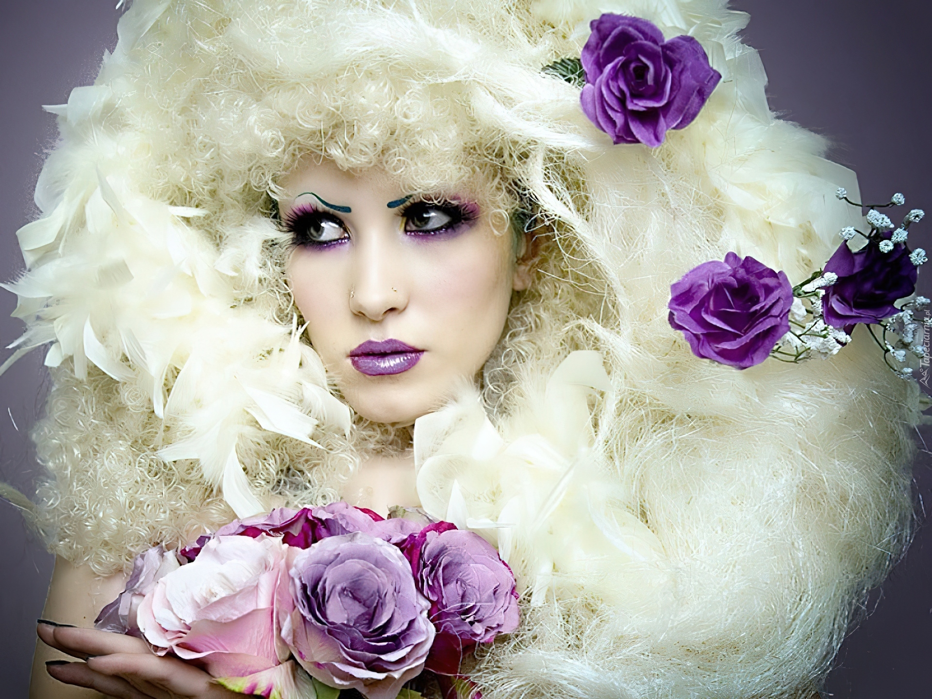 Edytor tapety: Dziewczyna, Makijaż, Purpurowe, Kwiatki