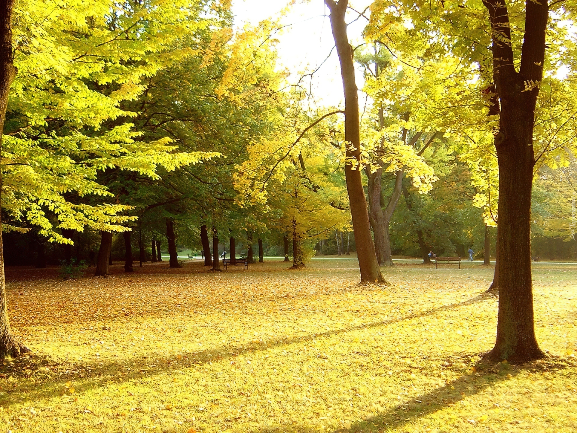 Edytor tapety: Park, Drzewa, Ławki, Liście