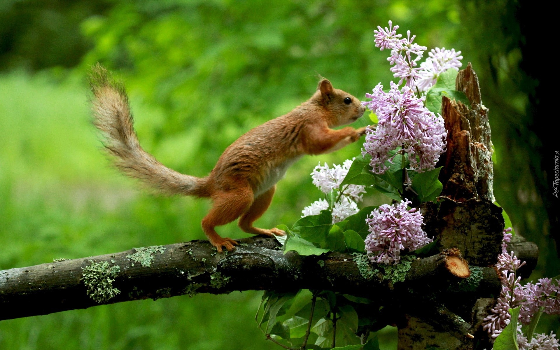 Edytor tapety: Wewiórka, Pień, Kwiaty