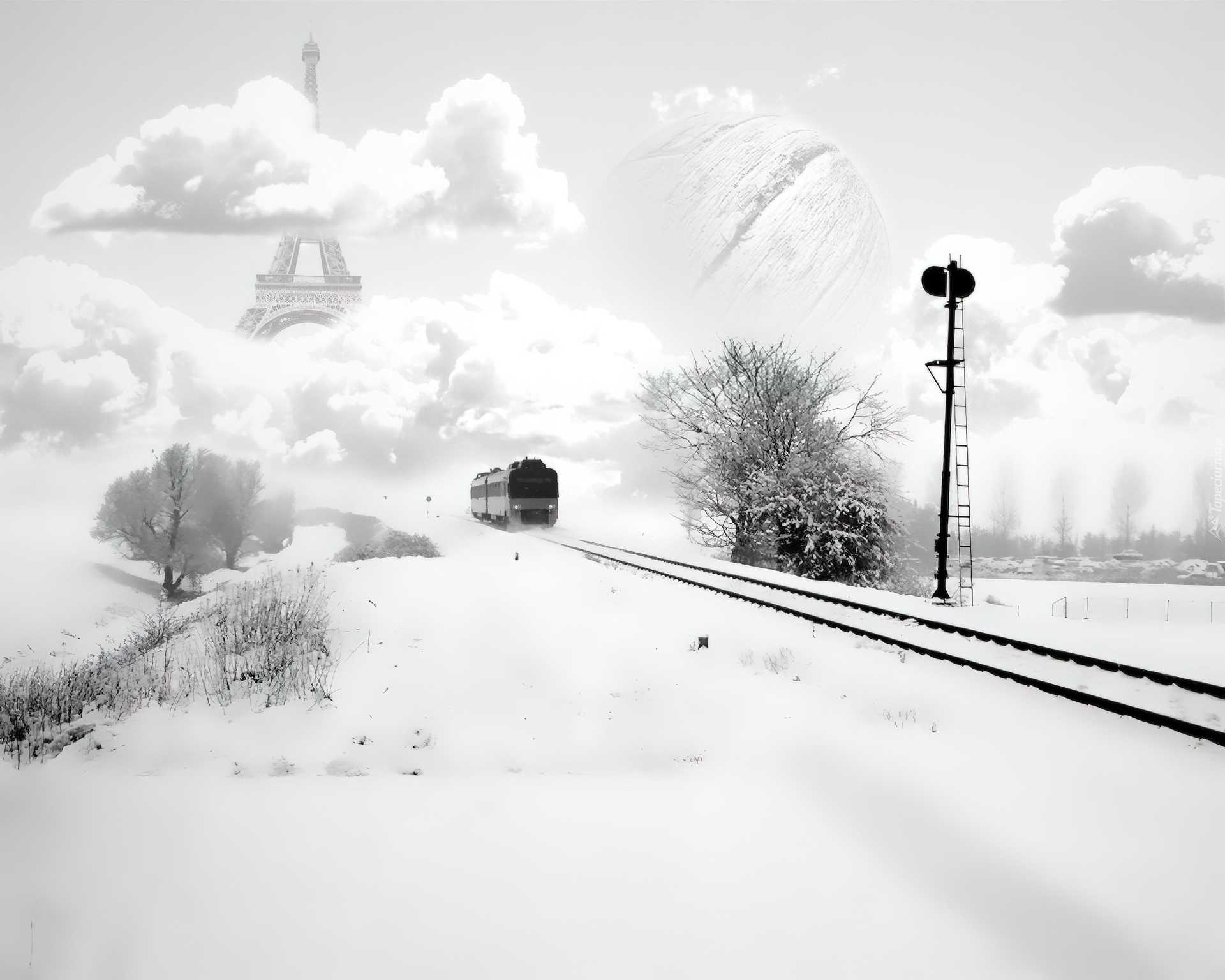 Edytor tapety: Zima, Pociąg, Tory, Abstrakcja