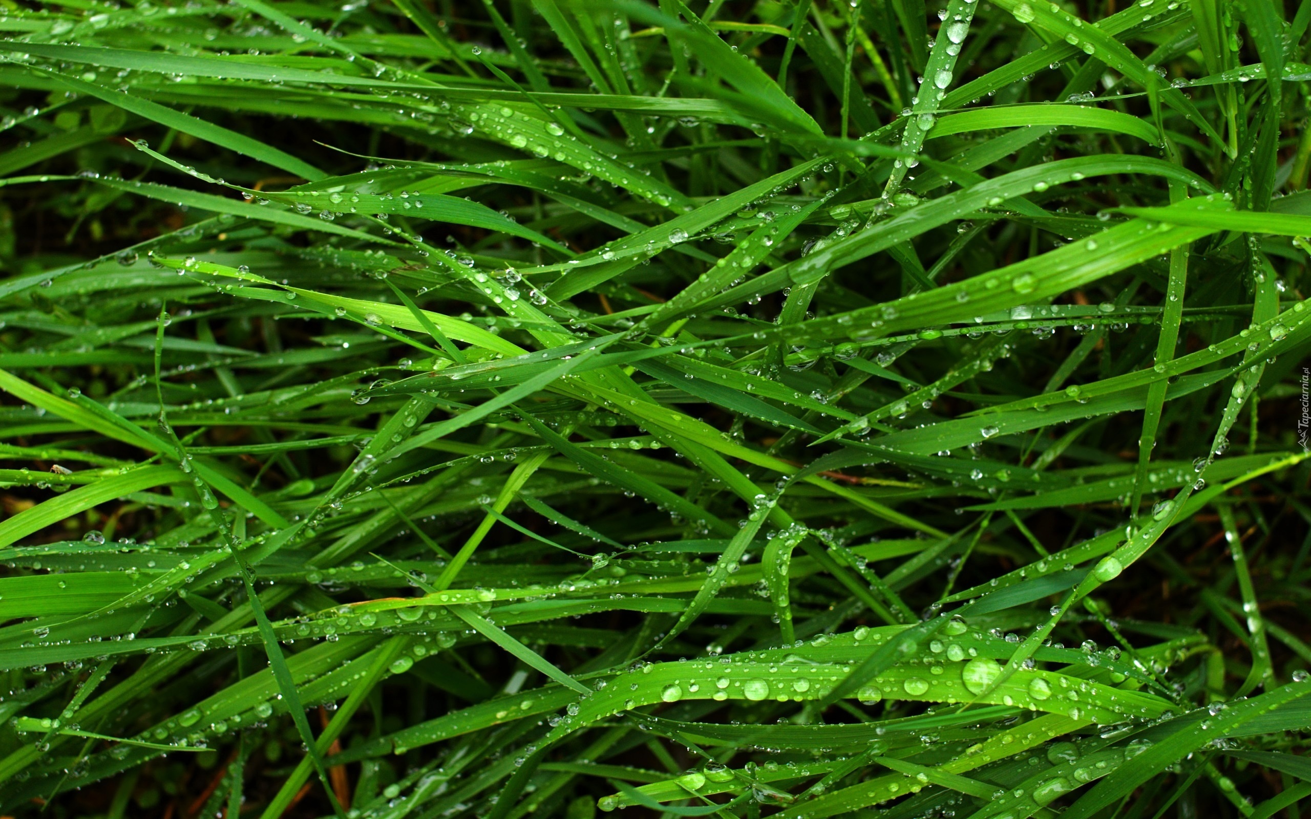 Edytor tapety: Zielone, Źdźbła, Trawy, Rosa