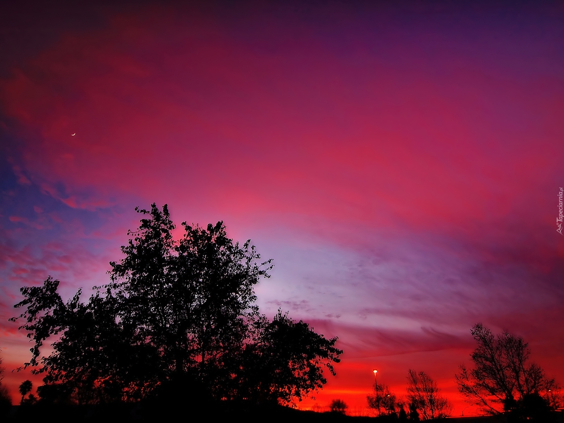 Edytor tapety: Różowe, Niebo, Zachód, Słońca, Drzewo