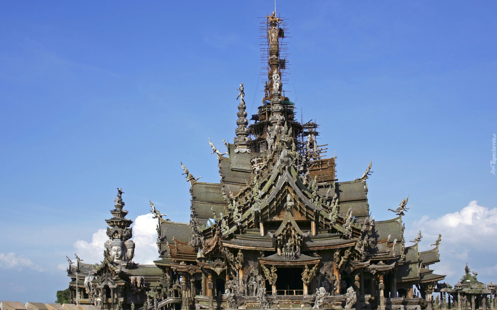 Edytor tapety: Chińska, Budowla, Dachy, Wejście, Posągi