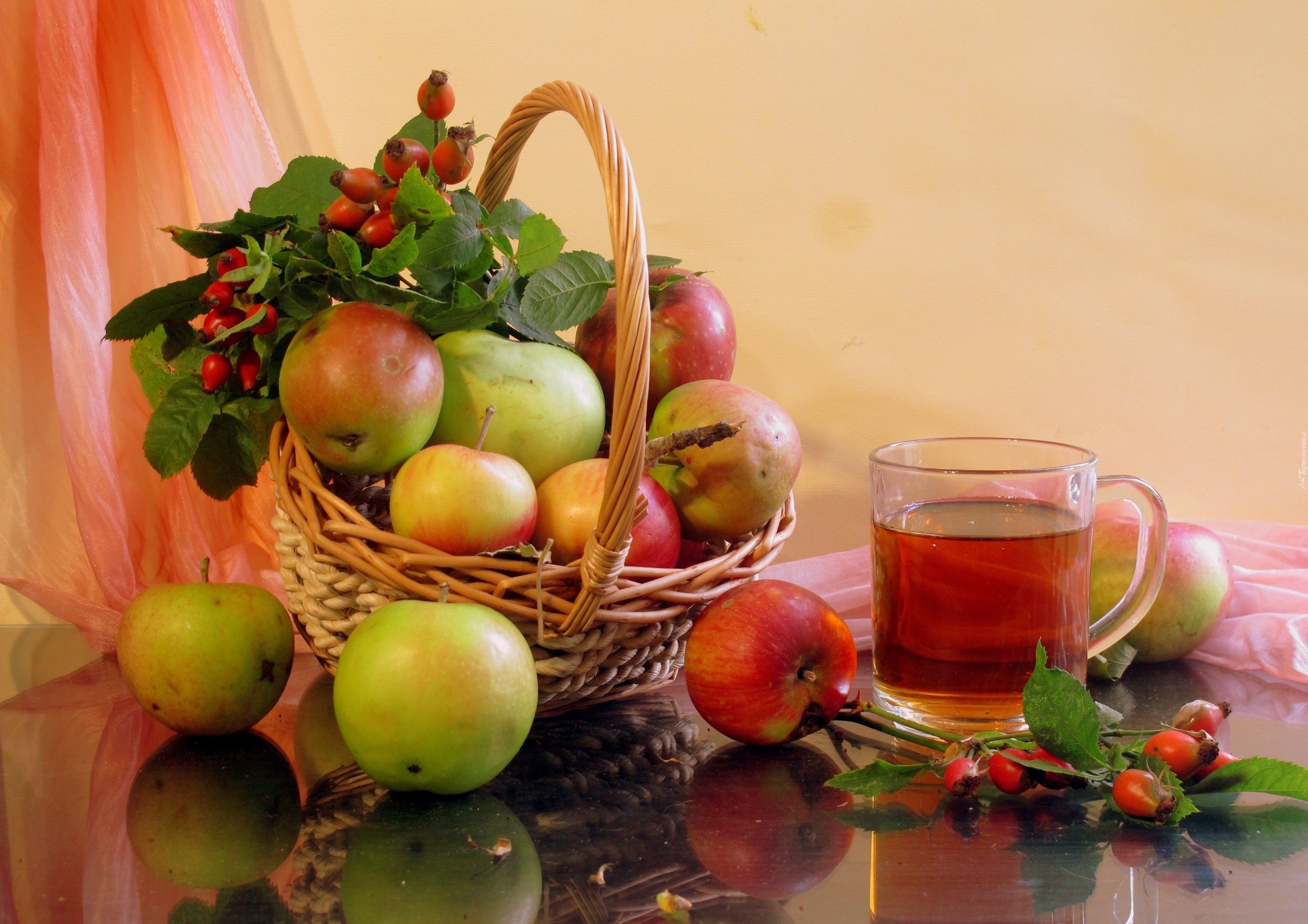 Edytor tapety: Kosz, Jabłka, Herbatka