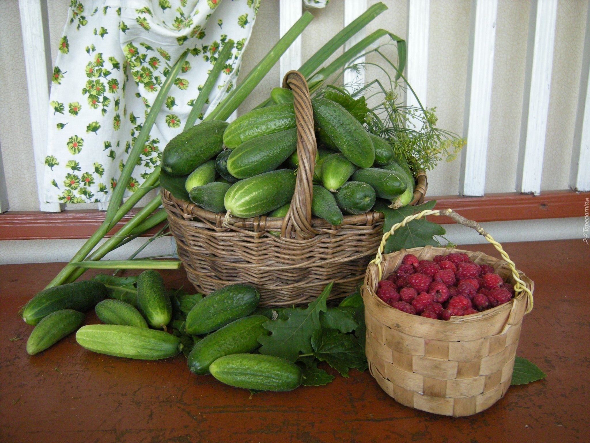 Edytor tapety: Kosze, Ogórki, Maliny, Koper