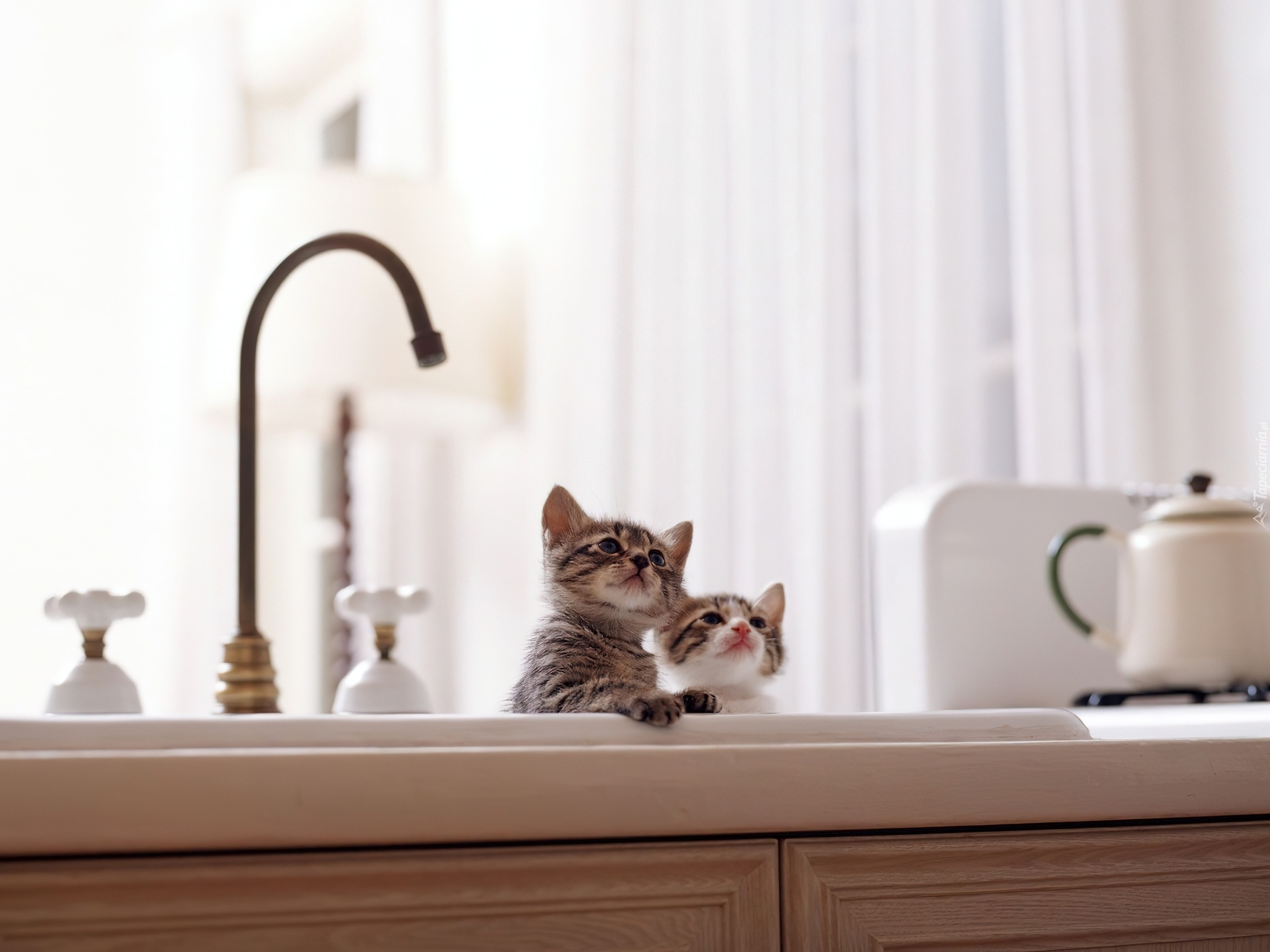 Edytor tapety: Dwa, Małe, Kotki, Zlew