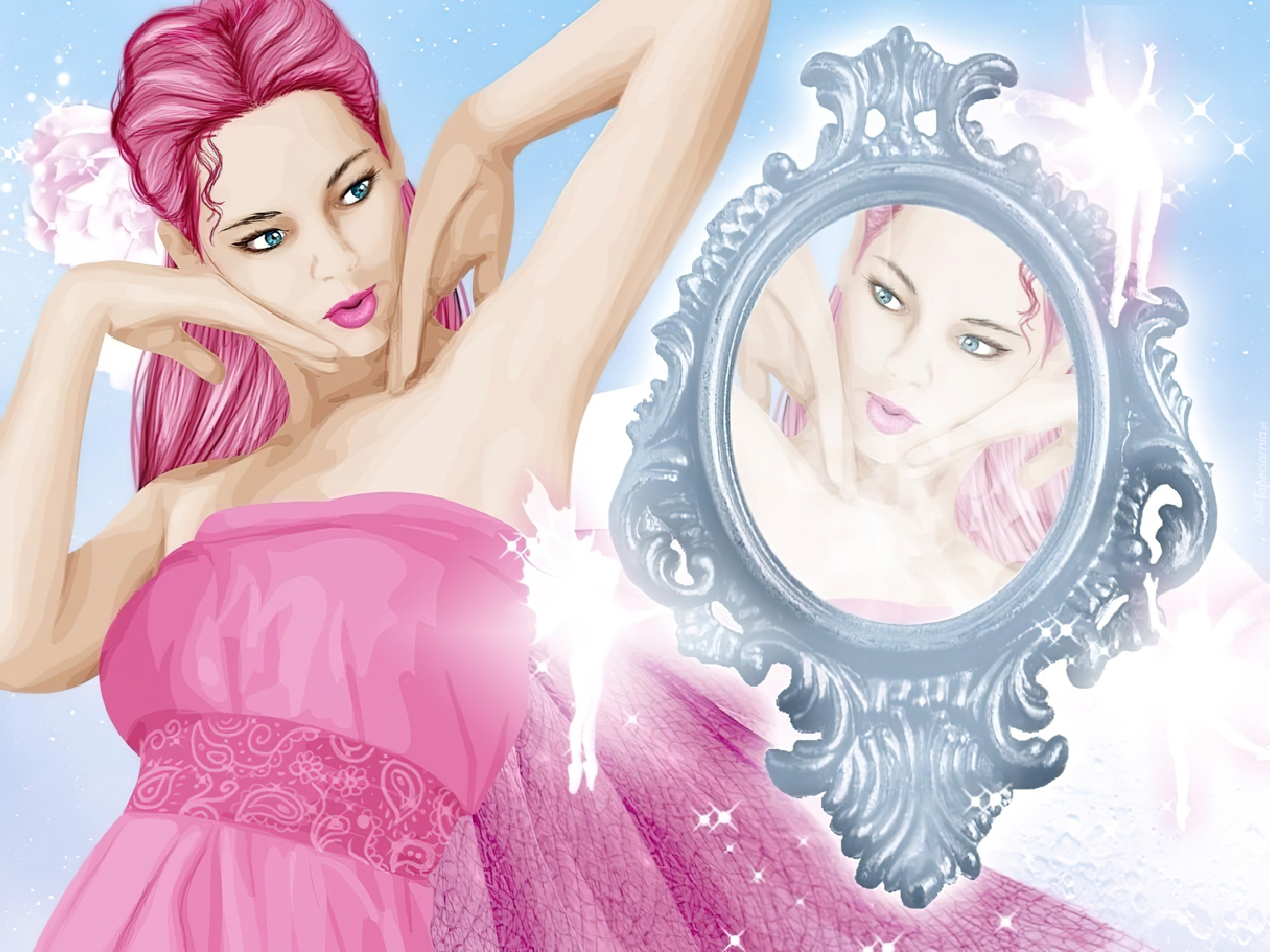 Edytor tapety: Dziewczyna, Przed, Lustrem, Grafika