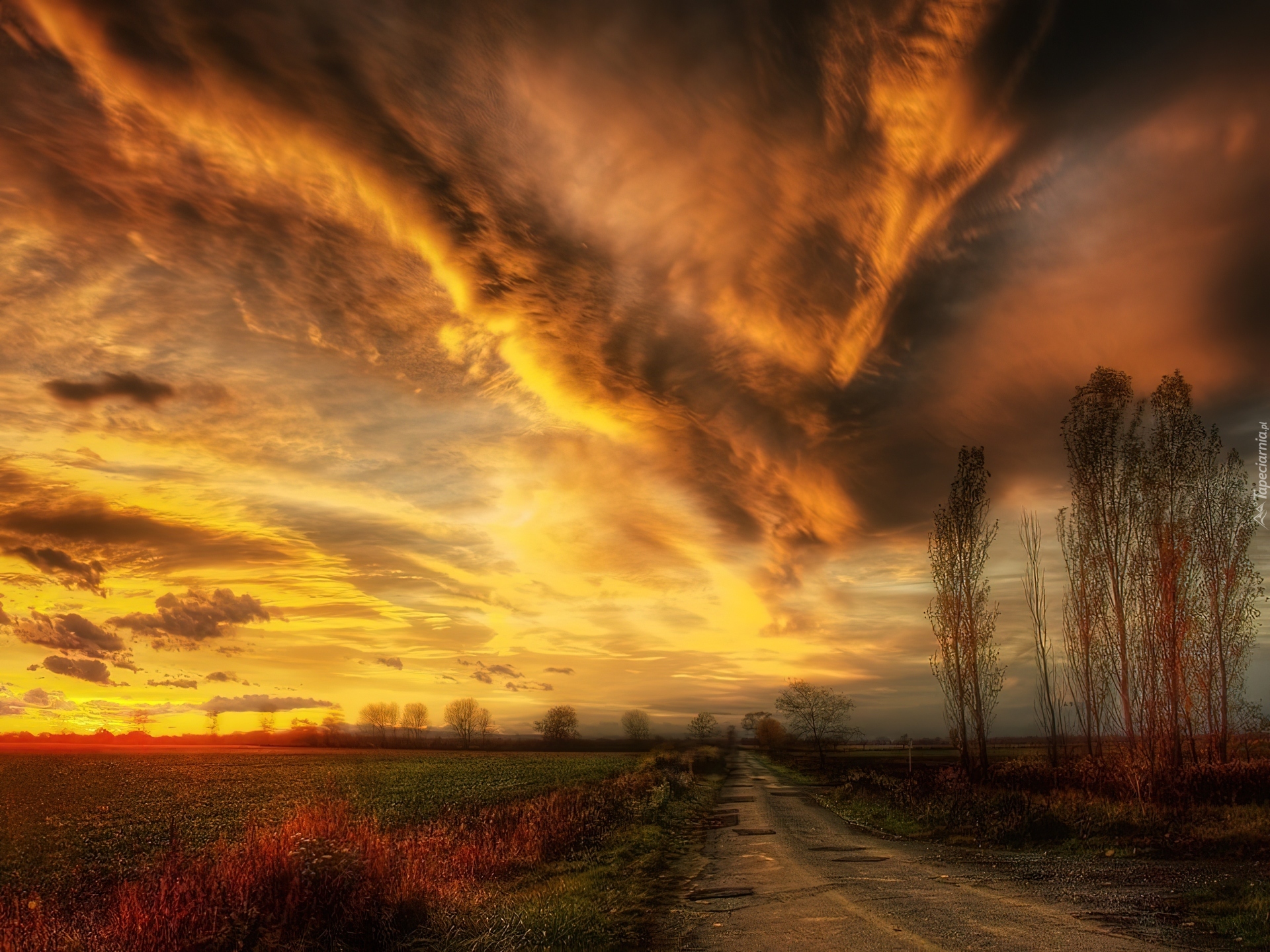 Edytor tapety: Chmury, Droga, Zachód, Słońca, Drzewa