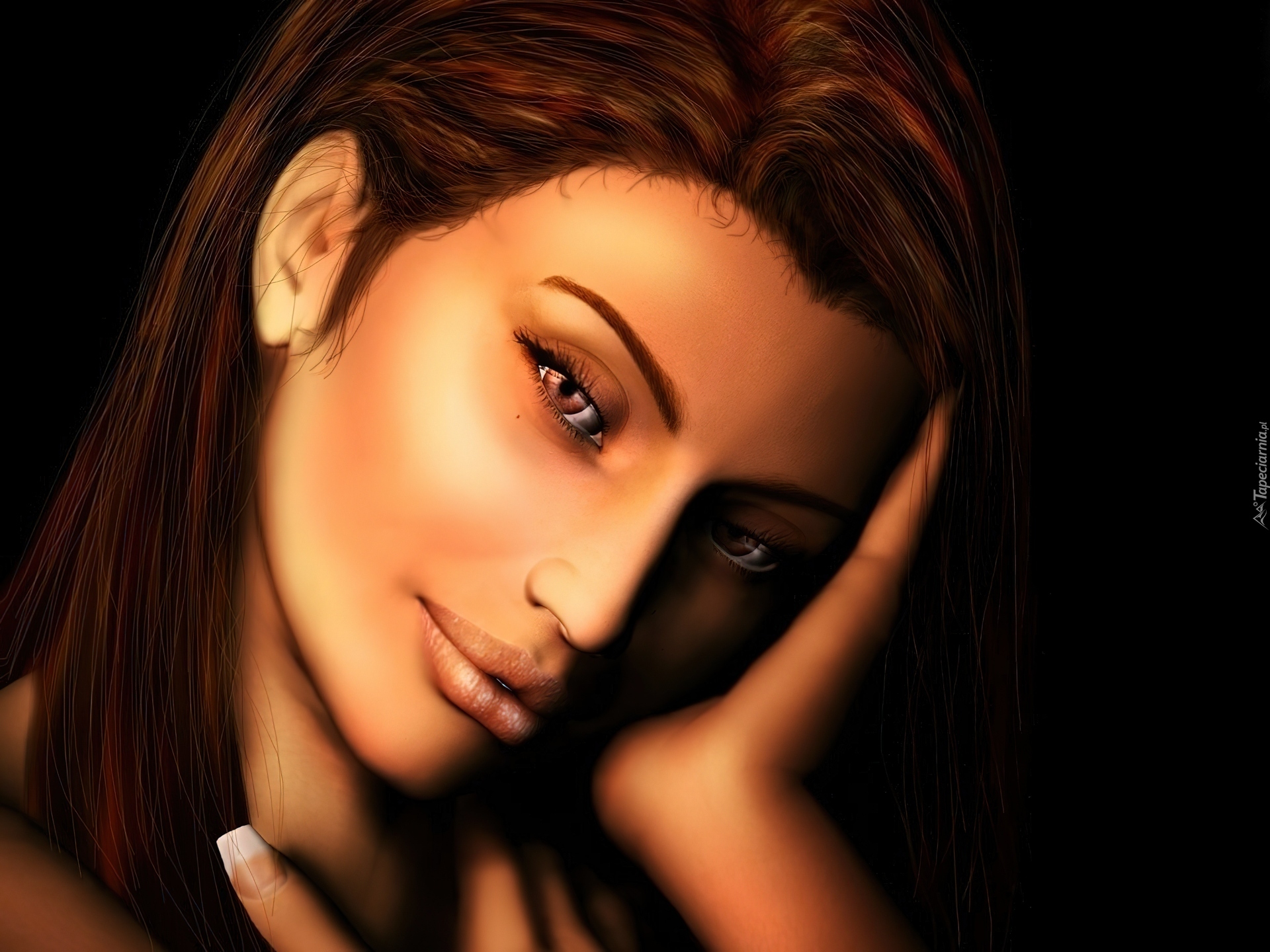 Edytor tapety: Zamyślona, Kobieta, Dłonie