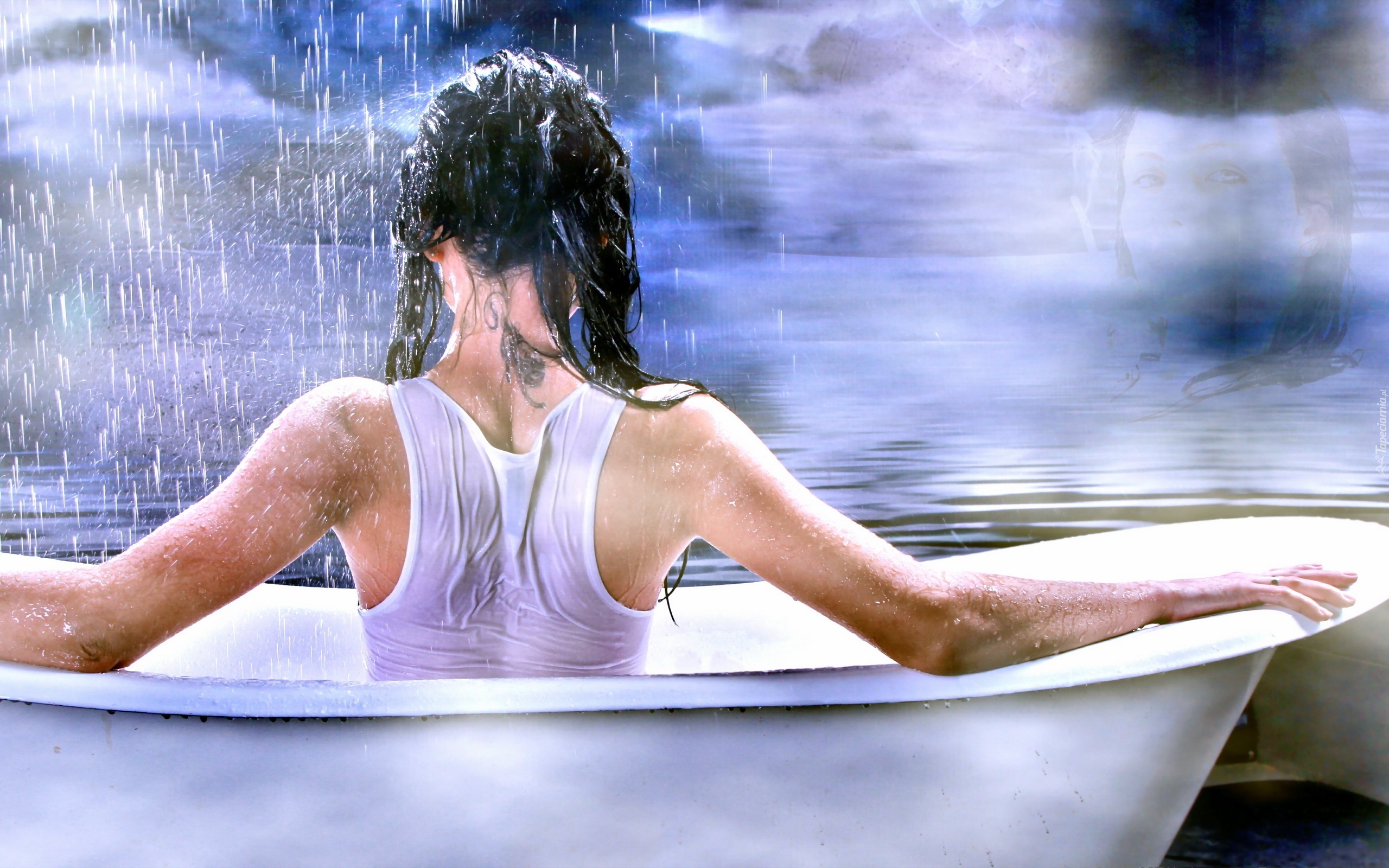 Edytor tapety: Dziewczyna, Wanna, Deszcz, Woda