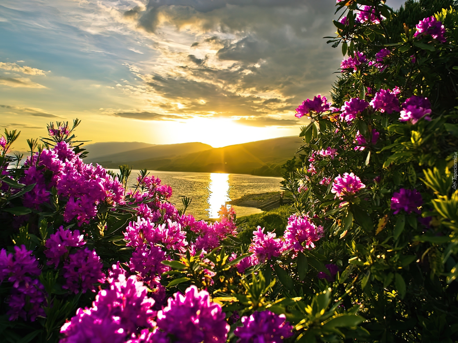 Edytor tapety: Jezioro, Kwiaty, Rododendron