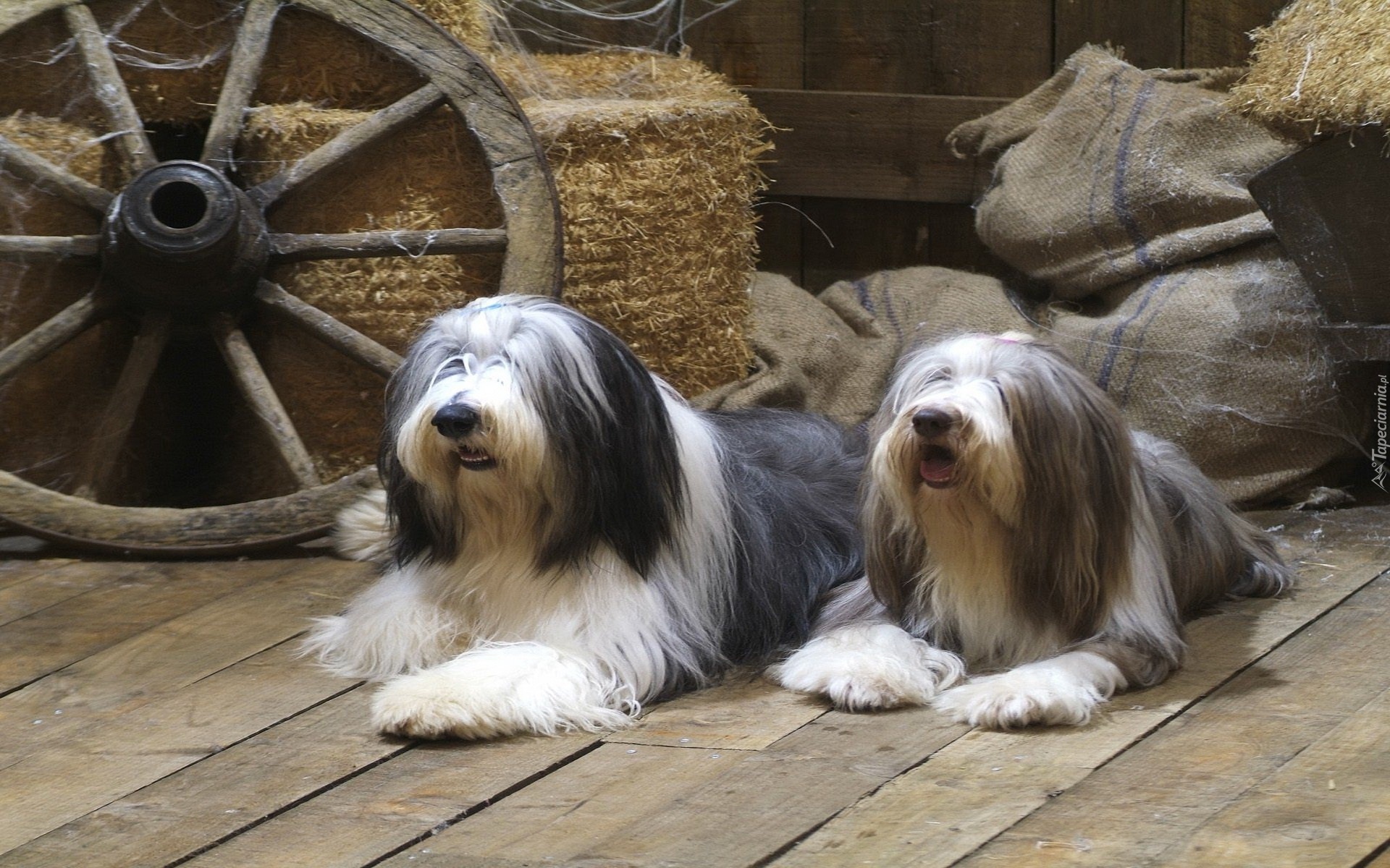 Edytor tapety: Dwa, Psy, Koło, Słoma