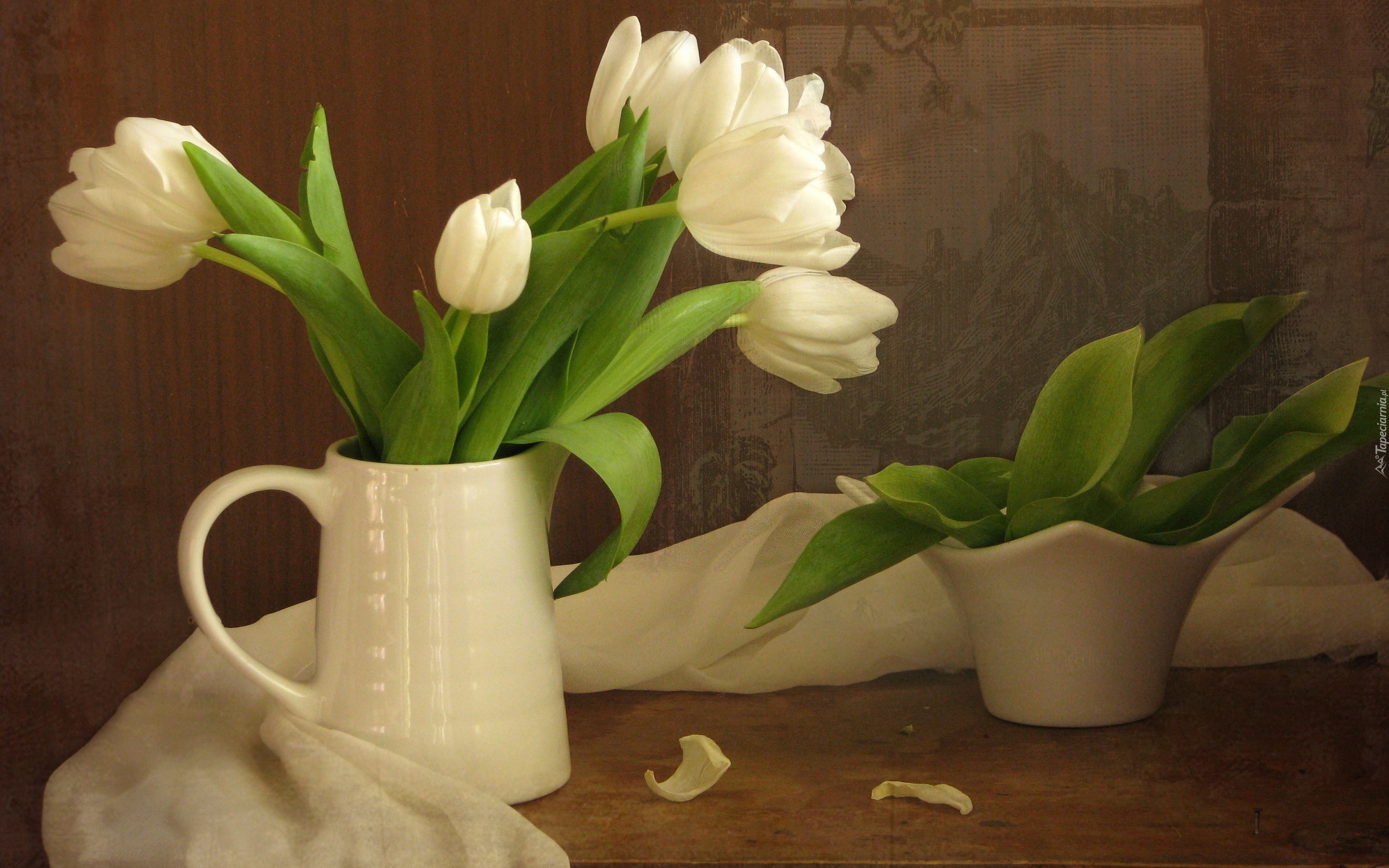 Edytor tapety: Białe, Tulipany, Porcelana, Szal