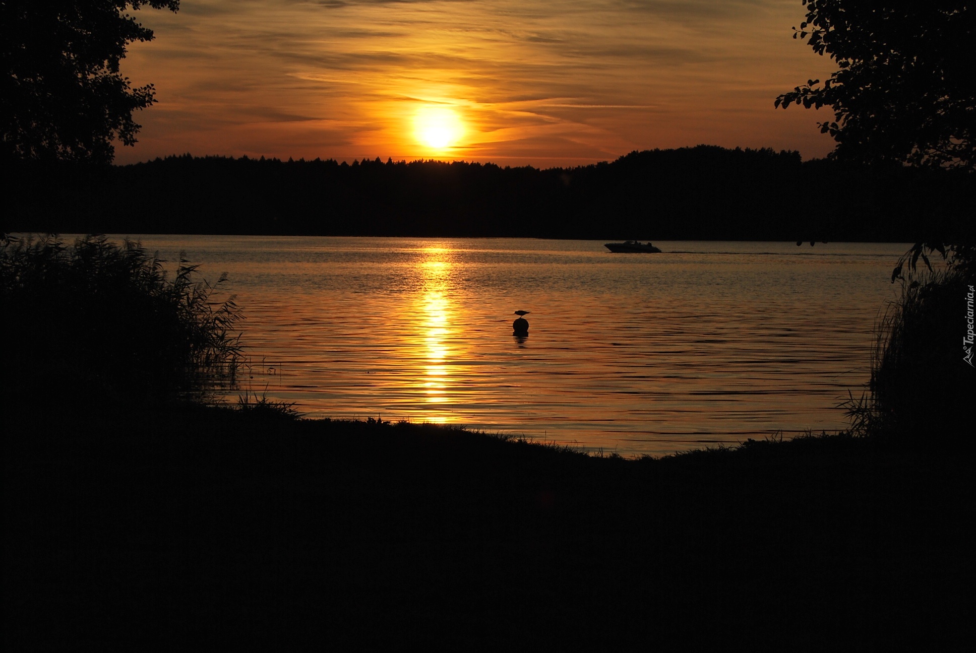 Edytor tapety: Zachód, Słońca, Jezioro Charzykowskie