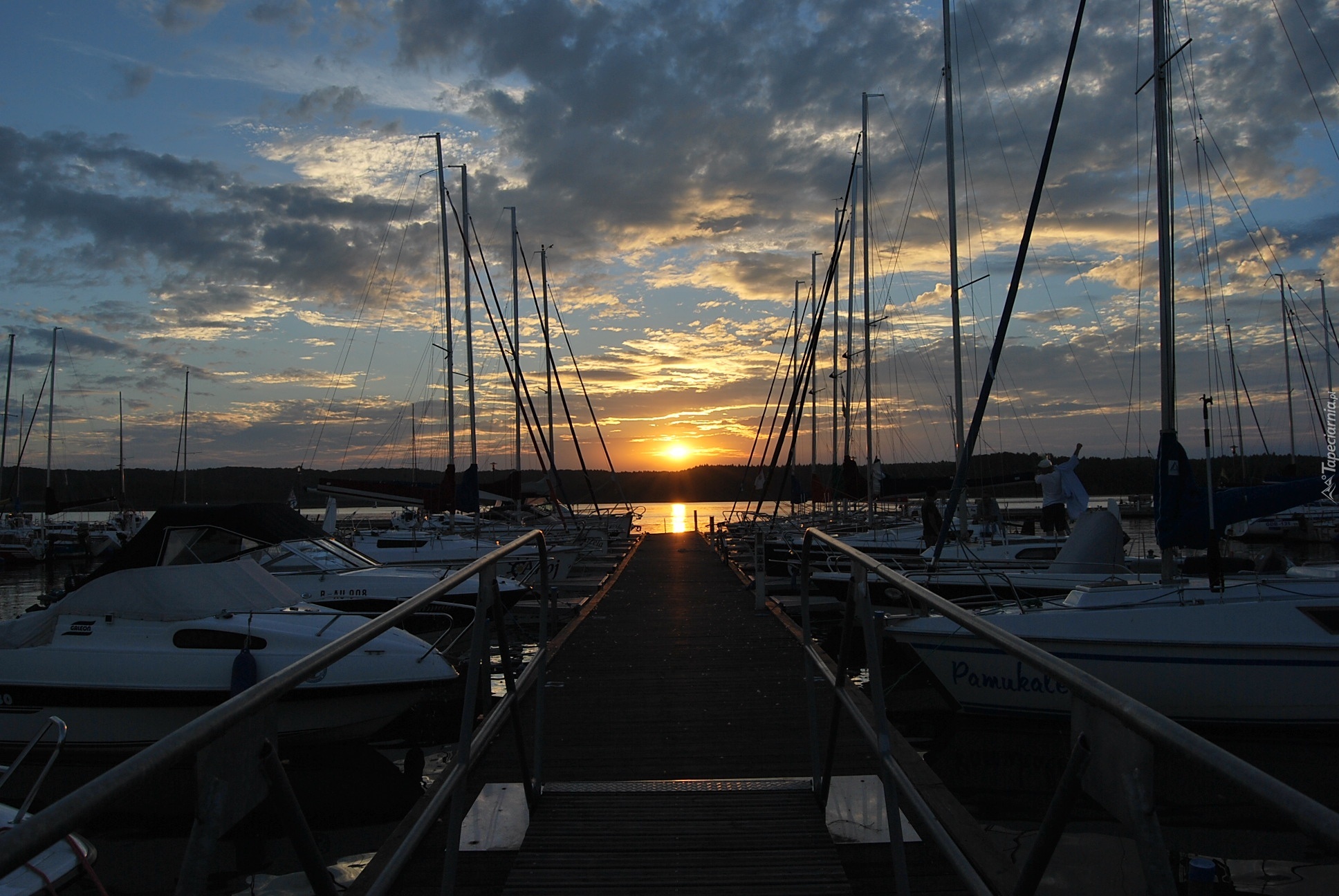 Edytor tapety: Jezioro Charzykowskie, Przystań, Jachty, Zachód, Słońca