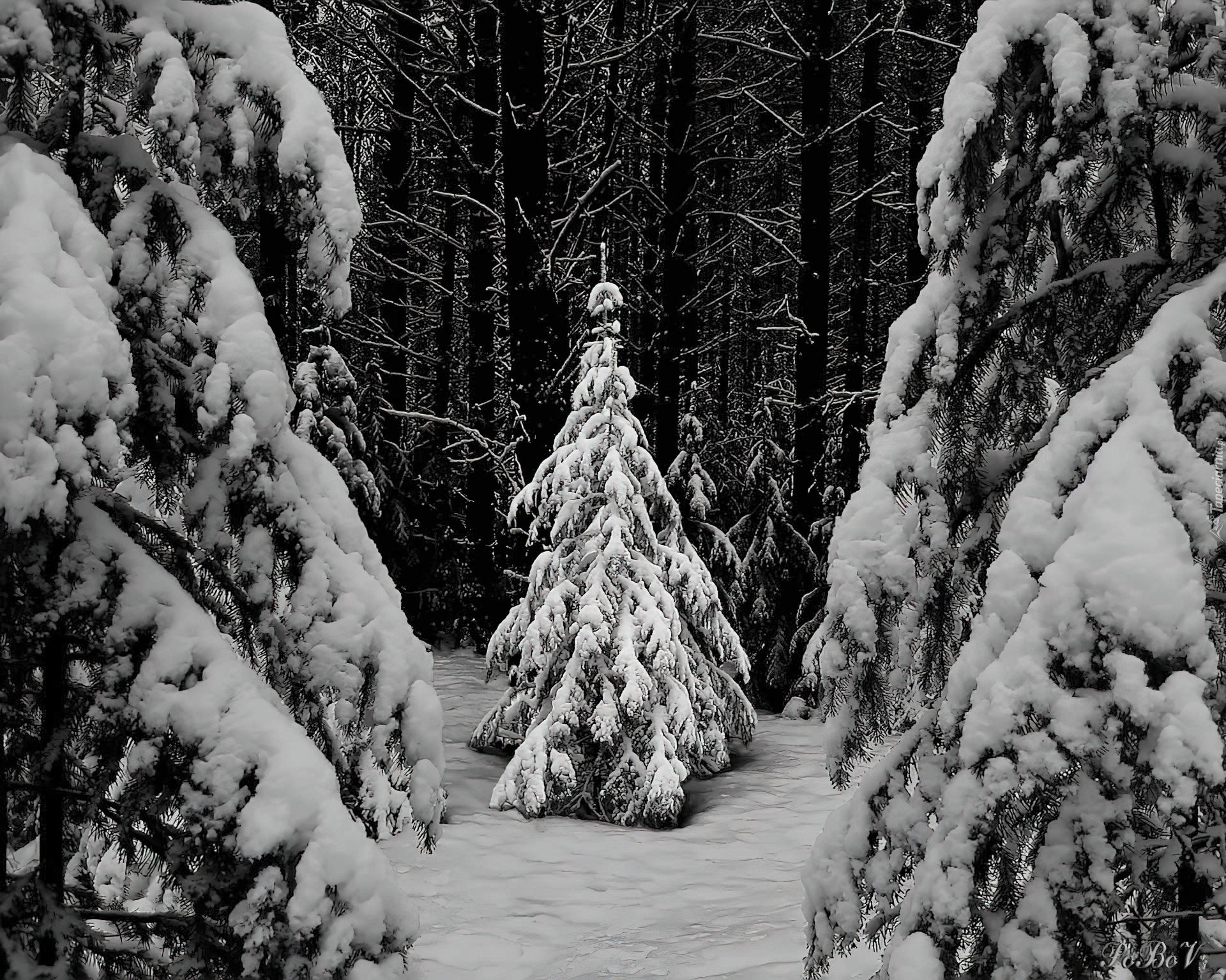 Edytor tapety: Las, Drzewa, Iglaste, Śnieg, Zaspy, Mróz