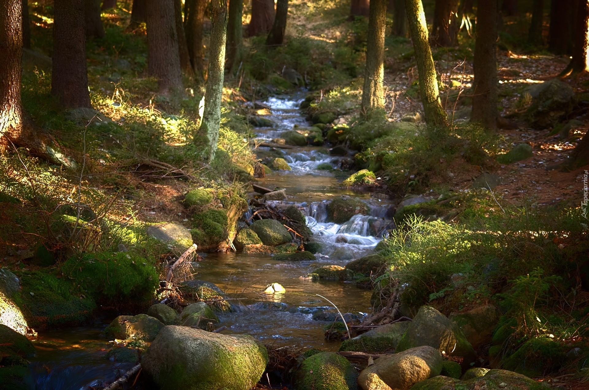 Edytor tapety: Las, Woda, Strumień, Kamienie