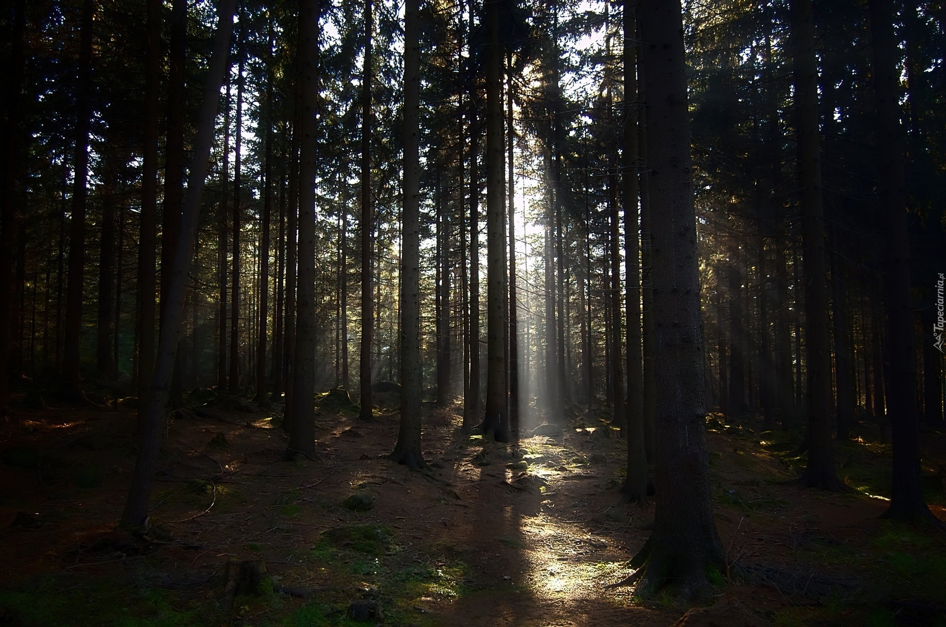 Edytor tapety: Las, Drzewa, Światło, Promień